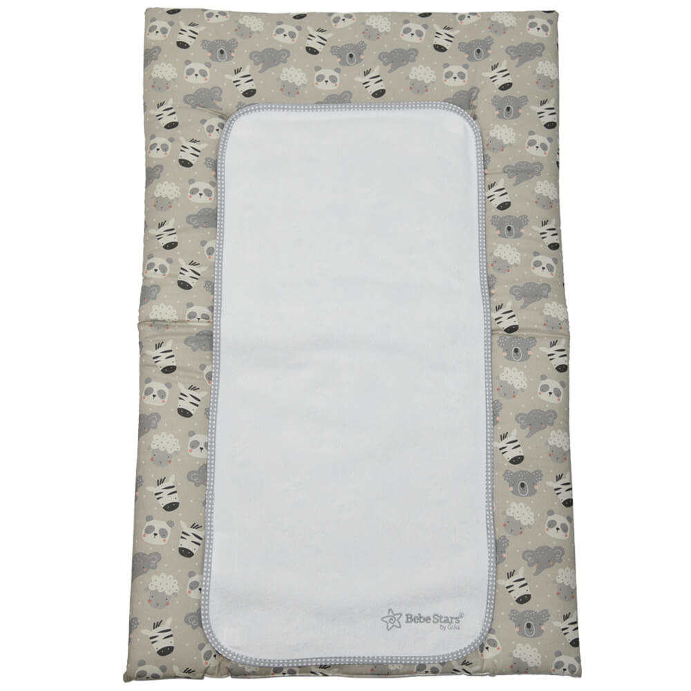 Εύκαμπτο στρωματάκι αλλαξιέρας σε γκρι αποχρώσεις της εταιρείας Bebe Stars. Το εξωτερικό ύφασμά του έχει σύνθεση από 100% βαμβάκι ενώ έχει γέμιση από μαλακό αφρώδες υλικό. Διαθέτει σελτεδάκι που εφαρμόζει με velcro για να αφαιρείται και να πλένεται.
