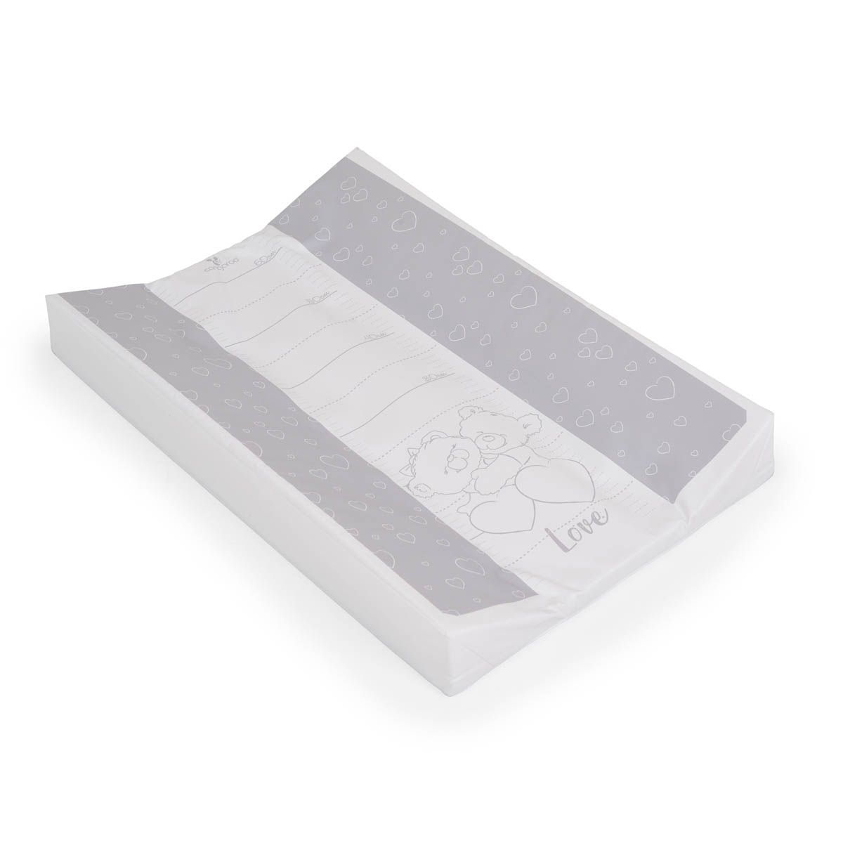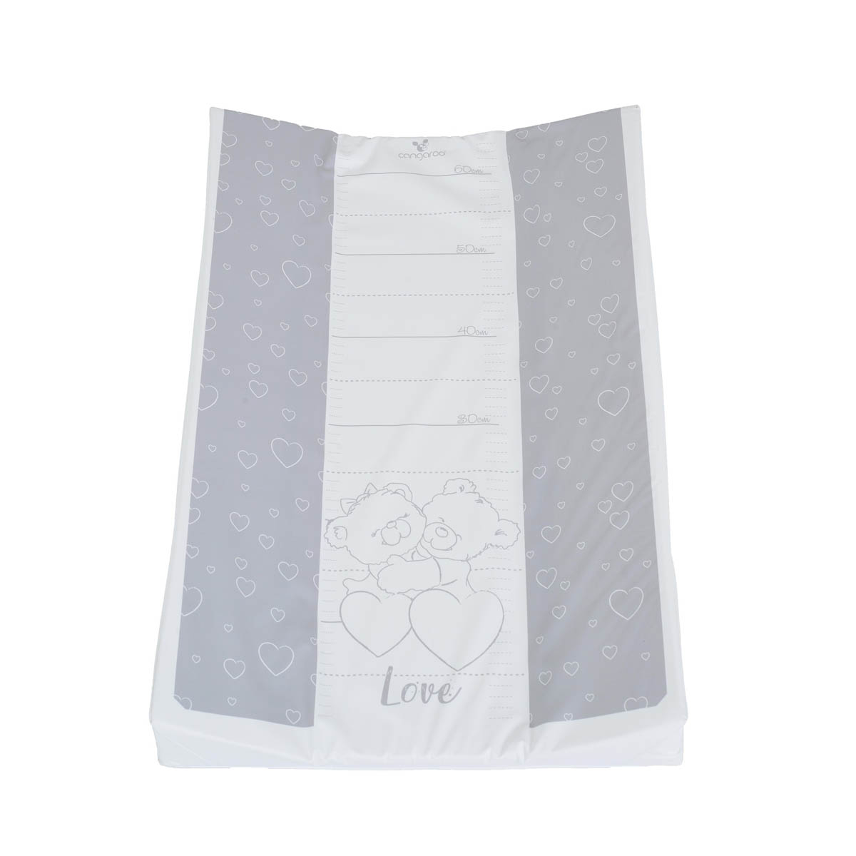 Μαλακό στρωματάκι αλλαξιέρας της εταιρείας Cangaroo σε γκρι-λευκό χρώμα με σχέδιο αρκουδάκια. Το εξωτερικό του κάλυμμα είναι από PVC που το καθιστά αδιάβροχο και εύκολο στο καθάρισμα. Εσωτερικά έχει μαλακό αφρώδες υλικό που προσφέρει άνεση στο μωρό και άκαμπτη βάση για σταθερότητα και ασφάλεια. Τα υπερυψωμένα πλαϊνά εξασφαλίζουν ότι το μωρό δεν θα μετακινηθεί από το στρωματάκι αποτρέποντας έτσι τυχόν χτυπήματα. Με τυπωτό μετρητή ύψους για να παρακολουθείτε εύκολα την ανάπτυξη του μωρού σας.