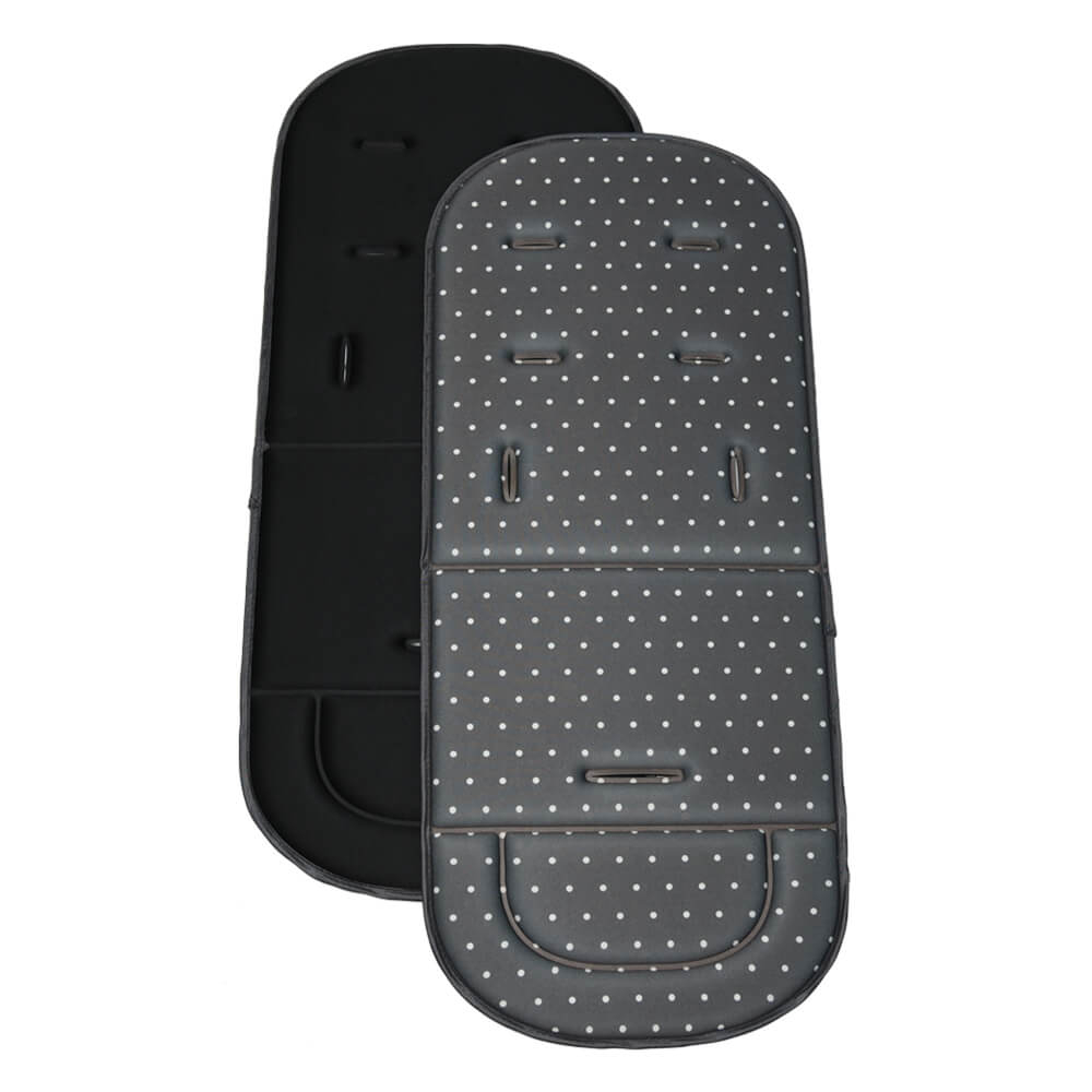 Στρωματάκι καροτσιού της εταιρείας Bebe Stars σε γκρι χρώμα με πουά σχέδιο αστεριών. Με υποαλλεργικό εξωτερικό ύφασμα από 100% polyester με πιστοποίηση Oeko-Tex και γέμιση με μαλακό αφρό μνήμης από πολυουρεθάνη που προσαρμόζεται στο σώμα του παιδιού. Έχει 7 ανοίγματα για ζώνες 5 σημείων και ταιριάζει σε όλους τους τύπους καροτσιών και καθισμάτων αυτοκινήτου. Κατάλληλο για όλες τις εποχές του χρόνου ώστε να διατηρεί καθαρό το καρότσι ή το κάθισμα του αυτοκινήτου. Τοποθετείται και αφαιρείται εύκολα.