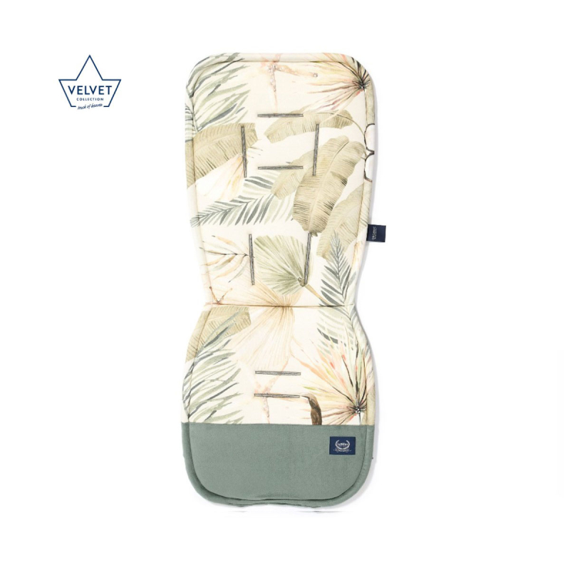 Στρωματάκι καροτσιού της εταιρείας La Millou σε χακί-εκρού χρώμα με tropical σχέδιο και κοραλί-μπεζ λεπτομέρειες. Το μαλακό jersey ύφασμα είναι από 100% οργανικό βαμβάκι. Η πίσω πλευρά έχει κομψό ύφασμα με βελουτέ υφή και χακί απόχρωση. Διαθέτει 2 λάστιχα για να τοποθετείται εύκολα στο καρότσι και να μένει σταθερό. Τα ανοίγματα για τις ζώνες είναι συμβατά με τα περισσότερα καροτσάκια και καθίσματα αυτοκινήτων της αγοράς που διαθέτουν ζώνες 5 σημείων. Είναι παχύ και έχει ελαστική γέμιση που προσφέρει άνεση στο μωρό σας. Με την χρήση του ιμάντα τοποθέτησης και του βρεφικού μαξιλαριού στήριξης Angel Wings (πωλούνται χωριστά), μπορείτε να ολοκληρώσετε το σετ προσφέροντας ταυτόχρονα εξαιρετική άνεση και στήριξη στο μωρό σας. Είναι κατασκευασμένο από υψηλής ποιότητας υλικά και είναι ιδανικό για δώρο. Όλα τα προϊόντα της εταιρείας La Millou είναι χειροποίητα.