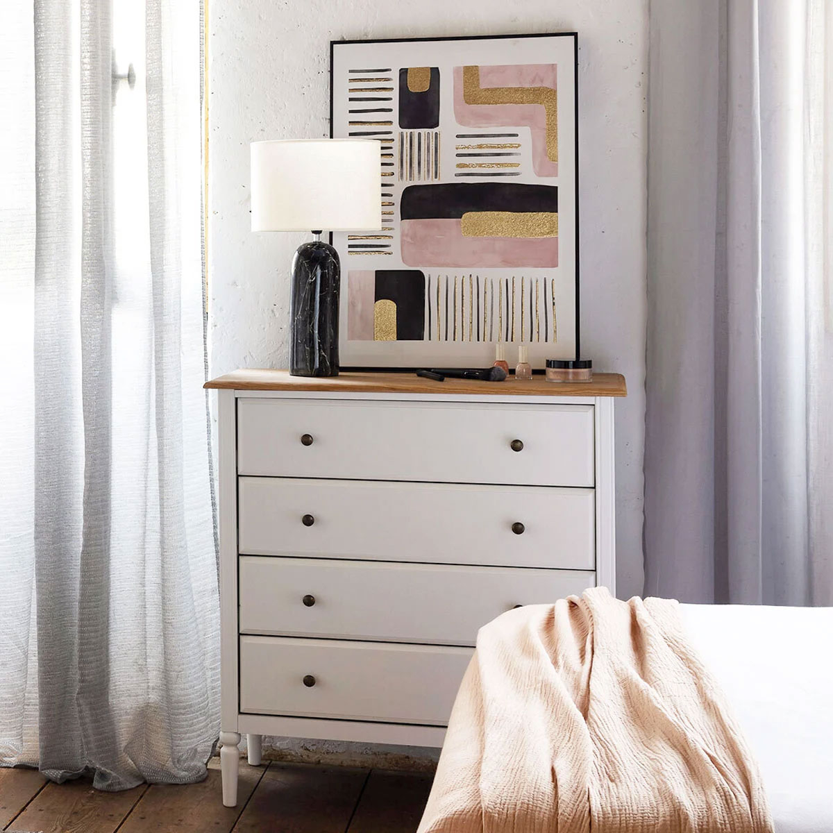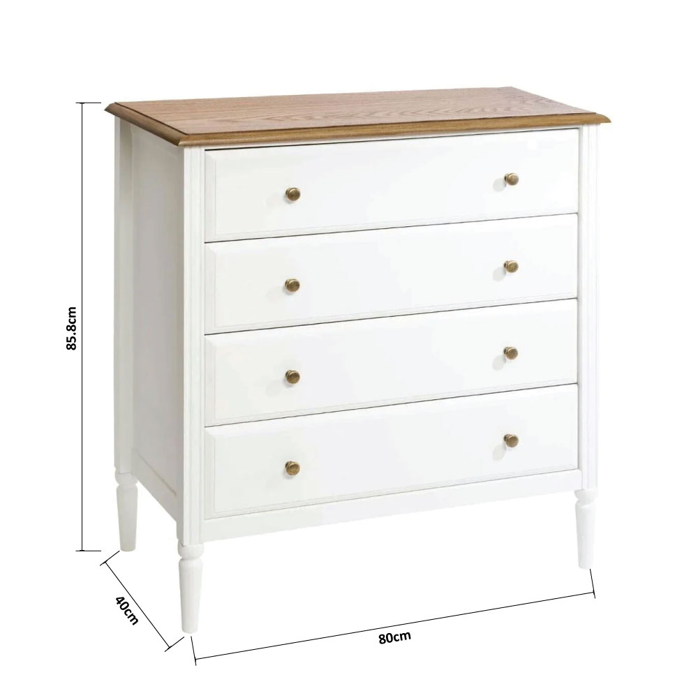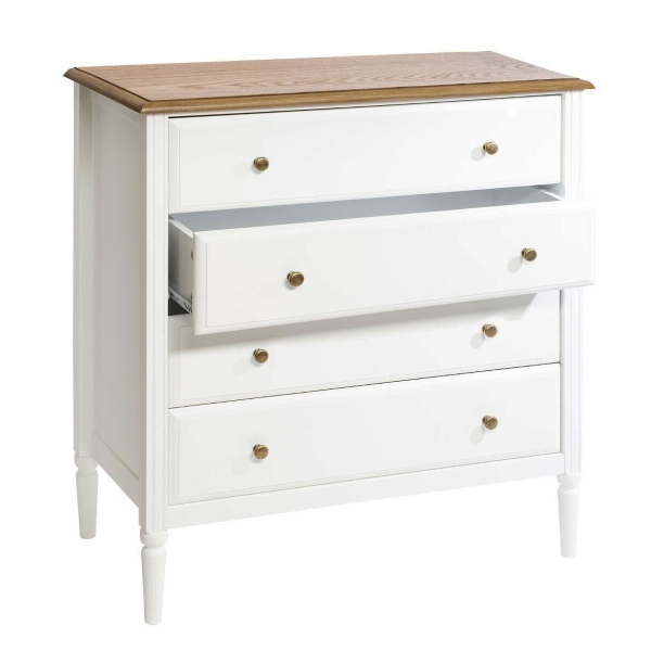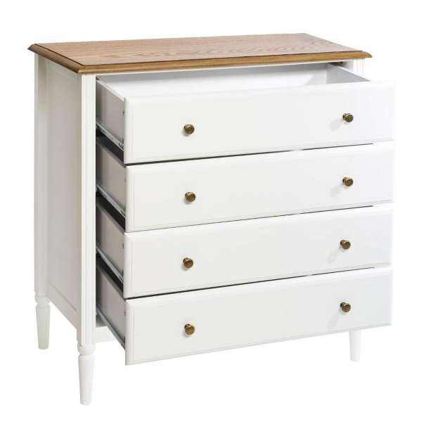 Συρταριέρα - σιφονιέρα 4 θέσεων σε λευκό χρώμα. Τα ευρύχωρα συρτάρια της είναι ιδανικά για να αποθηκεύσετε τα πράγματα σας και να διατηρήσετε τακτοποιημένο τον χώρο σας. Συνδυάστε τη με τα υπόλοιπα είδη της ίδιας συλλογής για ένα ολοκληρωμένο αποτέλεσμα στο χώρο σας. Το προϊόν έρχεται αμοντάριστό και συναρμολογείται βάσει οδηγιών.