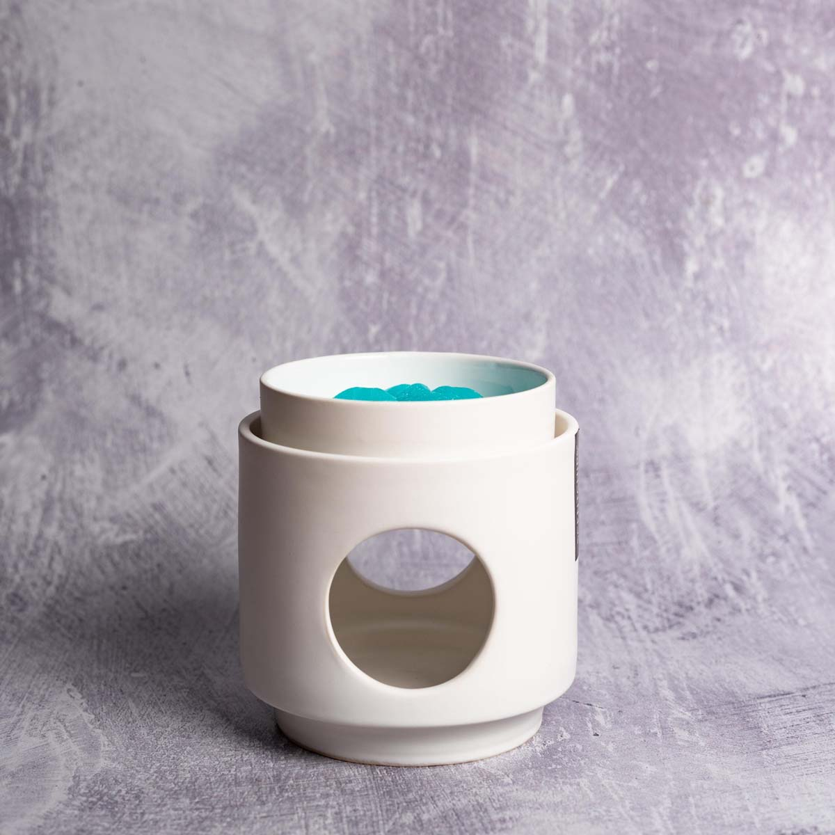 Συσκευή για αιθέρια έλαια από την εταιρεία Scentchips by Corona di Fiori. Είναι κατασκευασμένη από κεραμικό υλικό σε λευκό χρώμα. Ιδανική για αρωματικά έλαια αλλά και wax melts. Τοποθετήστε νερό στο πάνω μέρος του αρωματιστή και μερικές σταγόνες από το έλαιο σας. Σε περίπτωση που χρησιμοποιήσετε wax melts, δεν χρειάζεται να προσθέσετε νερό. Στη συνέχεια τοποθετήστε ένα ρεσώ στο κάτω μέρος. Η επίστρωση πορσελάνης του αρωματιστή έχει την ιδιότητα να θερμαίνεται σταδιακά με αποτέλεσμα να διαρκεί περισσότερο η μυρωδιά του ελαίου.