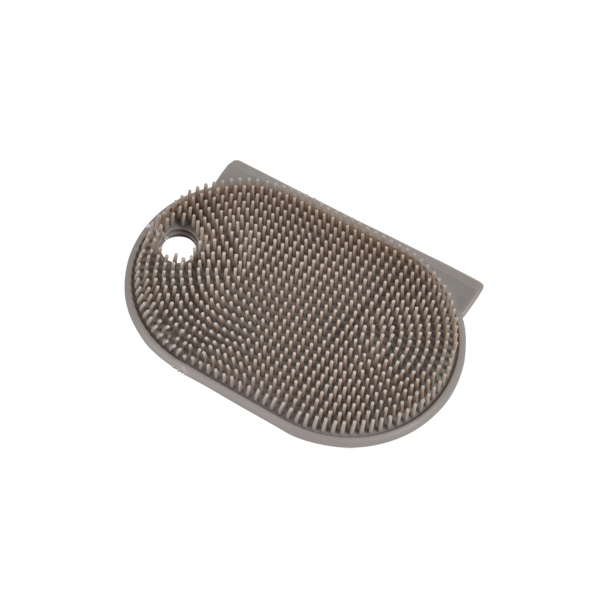 Σφουγγάρι κουζίνας από σιλικόνη σε μπεζ χρώμα. Η μία πλευρά έχει λεπτές τριχούλες για λεπτομερή αλλά απαλό καθαρισμό χωρίς γρατσουνιές. Είναι ιδανικό για τηγάνια, ταψιά, ποτήρια και ευαίσθητα πιάτα, καθώς και νεροχύτες, κλπ. Ακόμη διαθέτει σπάτουλα στην μια άκρη για να μπορείτε να μαζέψετε τα νερά από τον πάγκο σας.