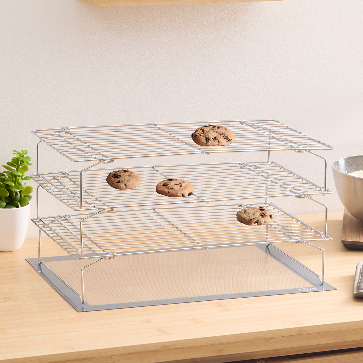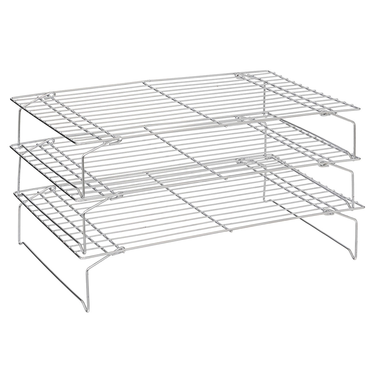 Σχάρες κρυώματος - γλασαρίσματος σε σετ 3 τεμάχιων. Είναι κατασκευασμένες από μεταλλικό υλικό σε ασημί χρώμα. Ο σχεδιασμός τους από μεταλλικό πλέγμα τις καθιστά κατάλληλες για όλου του είδους τα φουρνιστά, για να κρυώνουν χωρία να πανιάζουν. Ιδανικές σχάρες για κάθε νοικοκυριό.