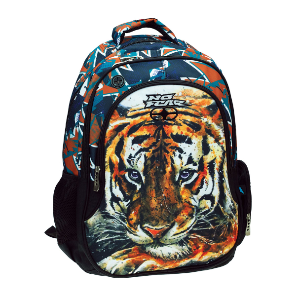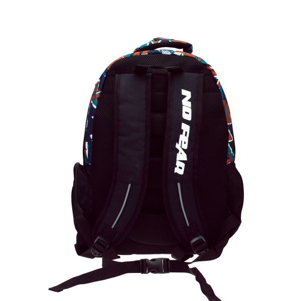 Σχολική τσάντα πλάτης δημοτικού σε μπλε-καφέ χρώμα και τίγρη στο σχέδιο της εταιρείας No Fear. Με 3 θήκες για βιβλία, τετράδια, κασετίνα και όλα τα απαραίτητα είδη γραφής για το σχολείο. Ιδανική για την καθημερινή ασφαλή, άνετη και εύκολη μεταφορά όλων των απαραίτητων σχολικών ειδών.