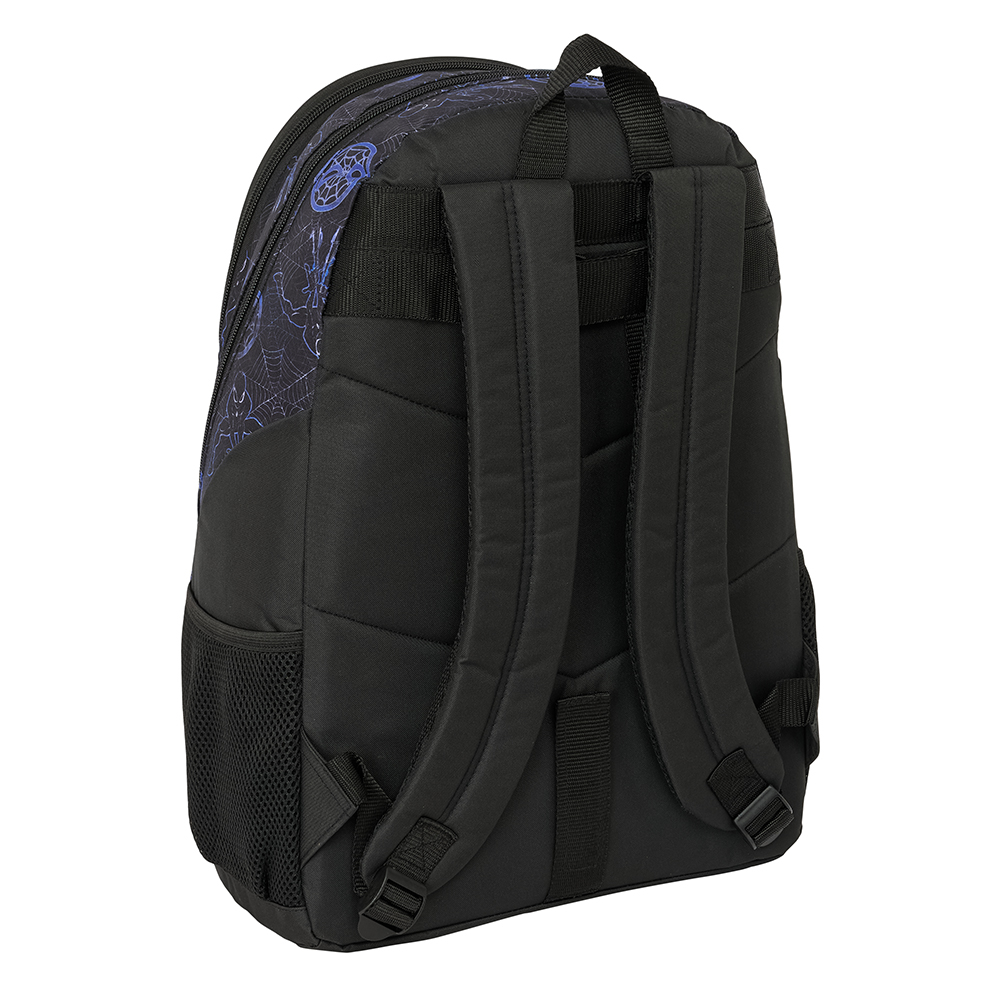 Τσάντα δημοτικού από την εταιρεία Safta. Έχει μαύρο-μπλε χρώμα με κόκκινες λεπτομέρειες και τον ήρωα της Marvel Spiderman στο σχέδιο. Είναι κατασκευασμένη από 100% polyester. Διαθέτει 2 μεγάλες θήκες που κλείνουν με φερμουάρ. Είναι αρκετά μεγάλη ώστε να χωρέσει ένα φαγητοδοχείο μεσημεριανού γεύματος, παιχνίδια και πολλά άλλα αντικείμενα. Έχει πλαϊνές θήκες με δίχτυ κατάλληλες για παγούρι. Η επιφάνεια της πλάτης, έχει εσωτερική επένδυση ώστε να αποφεύγονται τραυματισμοί. Διαθέτει μαξιλαράκια ώμου με επένδυση anti-sweat για άνεση και λιγότερο ιδρώτα. Η θηλιά στο επάνω μέρος καθιστά εύκολη τη μεταφορά. Ιδανική τσάντα για το δημοτικό, την εκδρομή ή οποιαδήποτε άλλη δραστηριότητα. Χωρητικότητας 23 λίτρα.