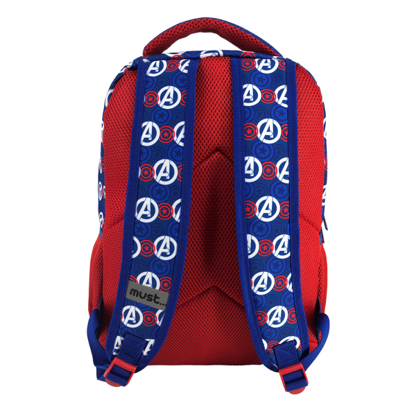 Σχολική τσάντα πλάτης δημοτικού της εταιρείας Must σε μπλε χρώμα με κόκκινες λεπτομέρειες και σχέδιο με τον ήρωα της Marvel Captain America. Με 3 θήκες για βιβλία, τετράδια, κασετίνα και όλα τα απαραίτητα είδη γραφής για το σχολείο. Ιδανική για την καθημερινή ασφαλή, άνετη και εύκολη μεταφορά όλων των απαραίτητων σχολικών ειδών.