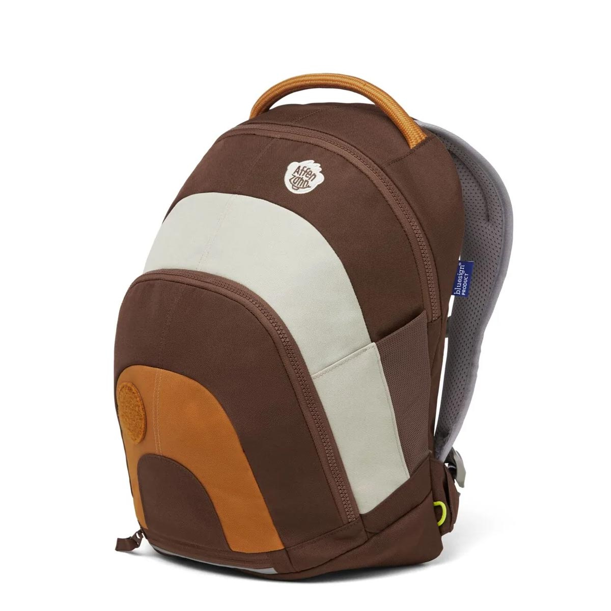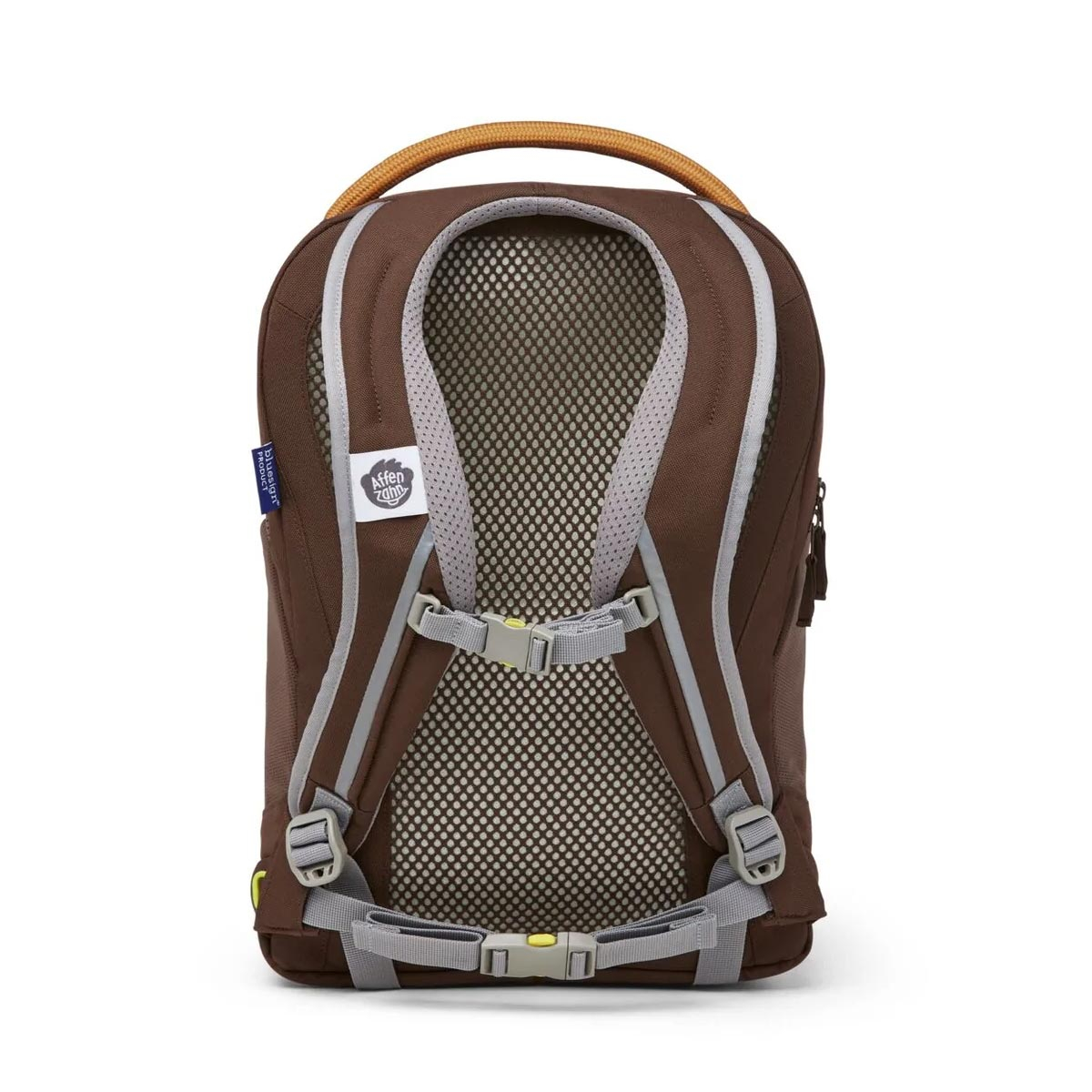 Σχολική τσάντα δημοτικού σε καφέ χρώμα από την εταιρία Affenzahn. Είναι κατασκευασμένη από αδιάβροχο ύφασμα, ανθεκτικό στους λεκέδες και από ανακυκλωμένες φιάλες PET. Έχει χωρητικότητα 12 λίτρα και είναι κατάλληλη για ηλικίες 5+ ετών. Ο ιμάντας στήθους είναι ρυθμιζόμενος και βοηθάει τα λουριά της πλάτης να παραμένουν σταθερά, ακριβώς όπως και τα περιεχόμενα του σακιδίου. Διαθέτει ανακλαστήρες για μεγιστοποίηση της ασφάλειας στο σκοτάδι, αλλά και μια γερή λαβή για να μπορεί να κρεμαστεί οπουδήποτε. Έχει επιπλέον αδιάβροχο κάλυμμα το οποίο βρίσκεται στο κάτω μέρος της τσάντας και συνδέεται εύκολα με τα άγκιστρα, παρέχοντας επιπλέον προστασία από τη βροχή. Τα μαλακά μαξιλαράκια ώμων είναι ιδανικά για να είναι άνετο το παιδί σας ενώ το εργονομικό σχήμα στο πίσω μέρος ευνοεί την κυκλοφορία του αέρα. Εσωτερικά υπάρχει και ετικέτα ονόματος. Ιδανική τσάντα για τα πρώτα σχολικά χρόνια του παιδιού σας.