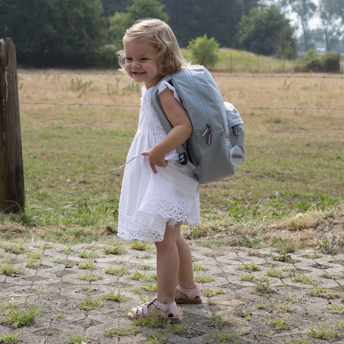 Παιδική τσάντα πλάτης από την εταιρεία ChildHome σε γκρι χρώμα με λευκές λεπτομέρειες ιδανική για κοριτσάκια και αγοράκια. Το ευρύ άνοιγμα με φερμουάρ εξασφαλίζει ταχύτερη και ευκολότερη πρόσβαση στο περιεχόμενο. Είναι κατασκευασμένη από 100% nylon. Στην μεγάλη τσέπη έχει μία θέση στην οποία μπορείτε να βάλετε τάγκριτ, 2 θεσεις με λάστιχο και μία θέση για παγούρι ή μπουκάλι. Εξωτερικά έχει μία επιπλέον τσέπη που κλείνει με φερμουάρ. Οδηγίες Φροντίδας: Δεν συνίσταται το πλύσιμο στο πλυντήριο. Καθαρίστε με νωπό πανί και στεγνώστε αμέσως.