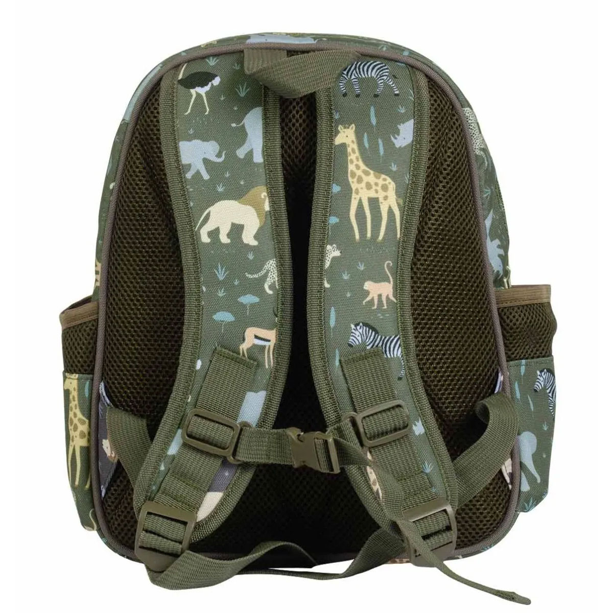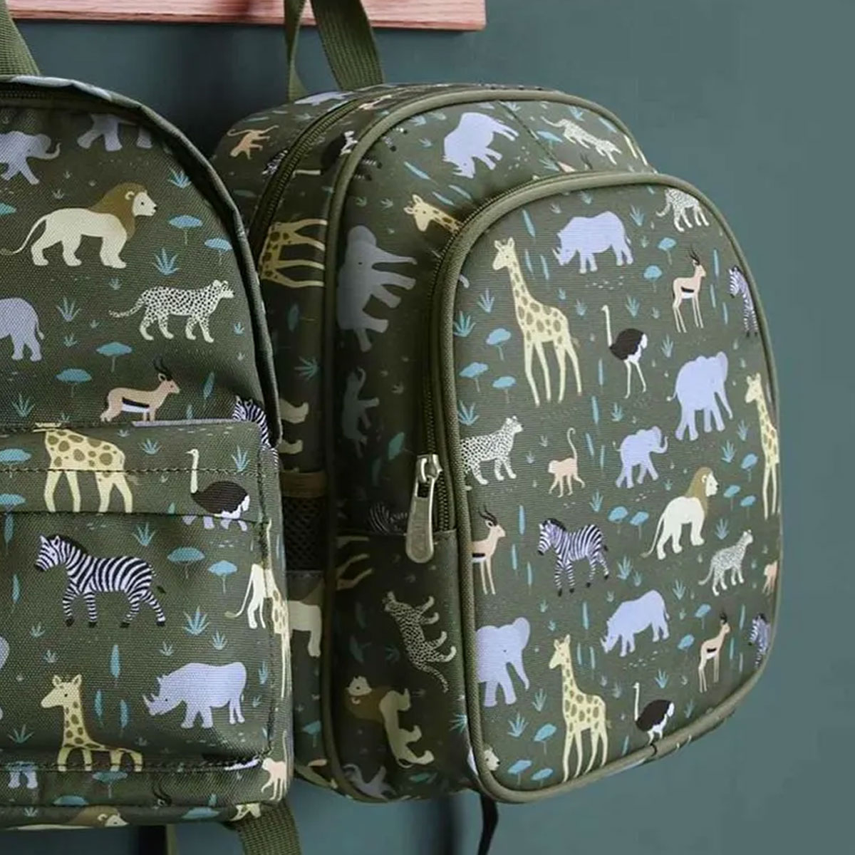 Σακίδιο πλάτης της εταιρείας A Little Lovely Company ιδανικό για ατέλειωτες βόλτες και για το σχολείο! Σε πράσινη απόχρωση με σχέδιο ζωάκια της ζούγκλας και χωρητικότητα 16 λίτρα. Είναι κατασκευασμένο από ελαφρύ πολυεστερικό ύφασμα και PEVA. Στο μπροστινό μέρος διαθέτει θήκη με ισοθερμική θήκη για να διατηρεί τα σνακ στη σωστή θερμοκρασία. Μπορεί να τοποθετηθεί παγοκύστη μέσα σε αυτή τη θήκη για να διατηθεί περισσότερη ώρα κρύο το περιεχόμενο (δεν περιλαμβάνεται). Έχει μία κύρια θήκη με μεγάλο χώρο και δύο πλαϊνές τσέπες για μπουκάλια. Διαθέτει ρυθμιζόμενους ιμάντες ώμου με επένδυση για άνεση και έξτρα λουρί κάτω από το στήθος που κουμπώνει για να τους διατηρεί σταθερούς. Στο πάνω μέρος του σακιδίου έχει λαβή για εύκολο πιάσιμο και μεταφορά. Στο πίσω μέρος έχει επένδυση που αναπνέει για επιπλέον άνεση.