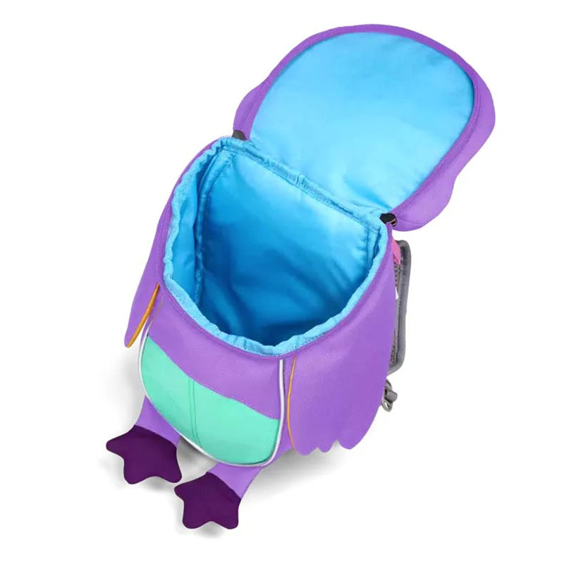 Σακίδιο πλάτης για το νηπιαγωγείο σε λιλά χρώμα με σχέδιο τουκάν πουλί και τυρκουάζ-κίτρινες λεπτομέρειες από την εταιρεία Affenzahn. Είναι κατασκευασμένο απο εγκεκριμένα υλικά bluesign® τα οποία πιστοποιούν ότι το προϊόν έχει κατασκευαστεί με 100% ανακυκλώσιμα υλικά και ειναι φιλικό προς το περιβάλλον. Έχουν χρησιμοποιηθεί 100% ανακυκλωμένα υφάσματα χωρίς την χημική ουσία pfc που χρησιμοποιειτε στα ενδύματα για αδιαβροχοποιηση και διαθέτει πιστοποίηση Gruner Knopf. Επίσης τα προιόντα παράγονται χωρίς απειλή για την υγεία των καταναλωτών και των εργαζομένων. Tο σακίδιο μπορεί να προσαρμοστεί ακριβώς στα μέτρα του παιδιού, χάρη στον ρυθμιζόμενο σε ύψος ιμάντα στήθους, που βοηθάει τα λουριά της πλάτης να παραμένουν σταθερά, ακριβώς όπως και τα περιεχόμενα του σακιδίου. Επιπλέον, διαθέτει ανακλαστήρες για μεγιστοποίηση της ασφάλειας στο σκοτάδι, αλλά και ένα πολύ δυνατό χερούλι για να μπορεί να κρεμαστεί από εκεί στο σπίτι, στον σταθμό ή στο νηπιαγωγείο. Τέλος, τραβώντας τη γλωσσίτσα στο μπροστά μέρος θα βρείτε μια ετικέτα για να σημειώσετε τα στοιχεία του κατόχου. Κατάλληλο για ηλικίες από 12 μηνών και ύψος 75 έως 105 εκατοστά. Χωρητικότητα 4 λίτρα.