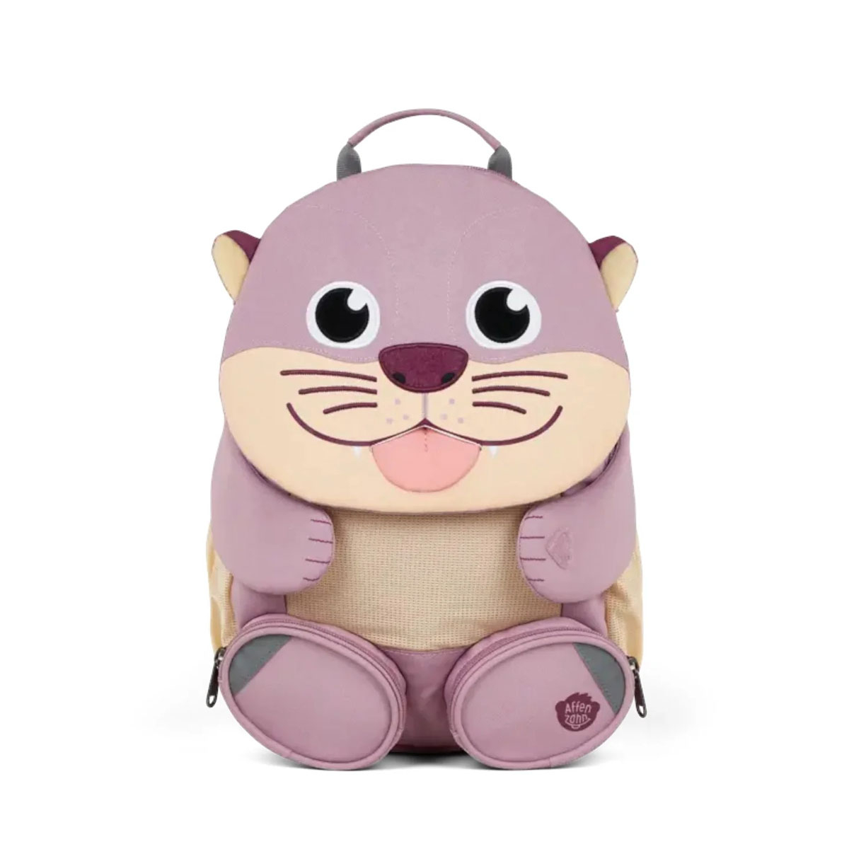 Σχολική τσάντα νηπιαγωγείου σε λιλά χρώμα, με μπεζ λεπτομέρειες και σχέδιο βίδρα από την εταιρεία Affenzahn. Είναι κατασκευασμένο από polyester το οποίο είναι σύνθεσης 50% από ανακυκλωμένα μπουκάλια και ειναι φιλικό προς το περιβάλλον. Έχει χωρητικότητα 8 λίτρα και βάρος 420γρ. Ο ιμάντας στήθους είναι ρυθμιζόμενος και βοηθάει τα λουριά της πλάτης να παραμένουν σταθερά, ακριβώς όπως και τα περιεχόμενα του σακιδίου. Διαθέτει ανακλαστήρες για μεγιστοποίηση της ασφάλειας στο σκοτάδι, αλλά και μια γερή λαβή για να μπορεί να κρεμαστεί οπουδήποτε. Τραβώντας την γλώσσα του δράκου στο μπροστινό μέρος, θα βρείτε μια ετικέτα για να σημειώσετε τα στοιχεία του κατόχου της τσάντας. Ιδανικό σακίδιο για το νηπιαγωγείο αλλά και τις βόλτες ή τις εκδρομές.