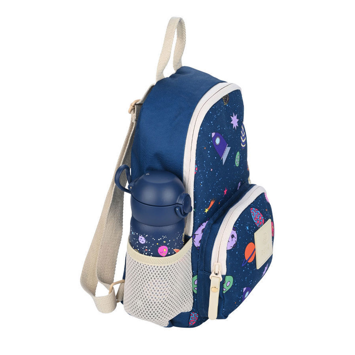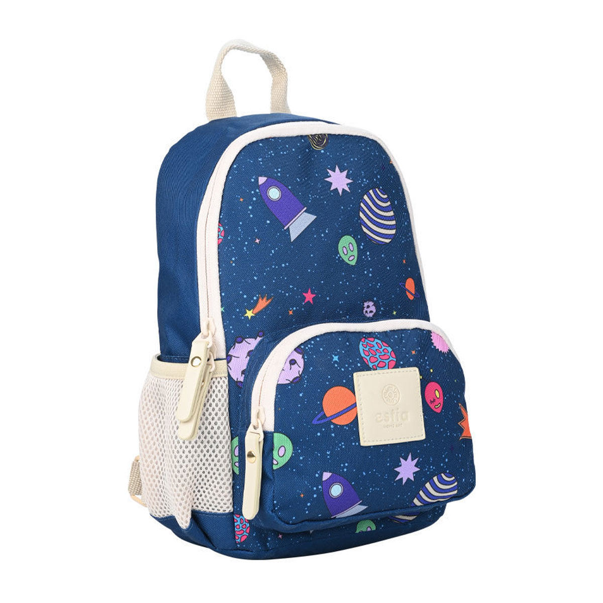 Τσάντα νηπιαγωγείου 6lt από την εταιρεία εstia και τη σειρά "Save The Aegean" σε μπλε χρώμα με πολύχρωμες λεπτομέρειες και μοντέρνο σχέδιο. Η εταιρεία εstia συνεισφέρει στον οργανισμό "Save The Aegean" με 1% επί των πωλήσεων, για καθαρότερες θάλασσες και ένα καλύτερο αύριο. Κατασκευασμένη από rPET υλικό, που προέρχεται από ανακυκλωμένα πλαστικά μπουκάλια. Διαθέτει μια μεγάλη θήκη με φερμουάρ. Εσωτερικά της έχει μία τσέπη. Μπροστά έχει μία μικρότερη θήκη με φερμουάρ και δύο πλαϊνές θήκες. Ιδανικές για την αποθήκευση μικρών αντικειμένων ή μπουκαλιών, δίνοντας εύκολη πρόσβαση. Οι ρυθμιζόμενοι ιμάντες εξασφαλίζουν βολική χρήση. Η θηλιά στο επάνω μέρος καθιστά επίσης εύκολη τη μεταφορά. Ιδανική τσάντα για τον παιδικό σταθμό, το νηπιαγωγείο, την εκδρομή ή οποιαδήποτε άλλη δραστηριότητα. Συνδυάστε τη με τα υπόλοιπα είδη της σειράς για ένα ολοκληρωμένο αποτέλεσμα.