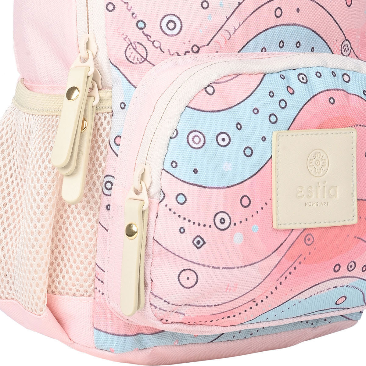 Τσάντα νηπιαγωγείου 6lt από την εταιρεία εstia και τη σειρά "Save The Aegean" σε σομόν χρώμα με γαλάζιες λεπτομέρειες και μοντέρνο σχέδιο. Η εταιρεία εstia συνεισφέρει στον οργανισμό "Save The Aegean" με 1% επί των πωλήσεων, για καθαρότερες θάλασσες και ένα καλύτερο αύριο. Κατασκευασμένη από rPET υλικό, που προέρχεται από ανακυκλωμένα πλαστικά μπουκάλια. Διαθέτει μια μεγάλη θήκη με φερμουάρ. Εσωτερικά της έχει μία τσέπη. Μπροστά έχει μία μικρότερη θήκη με φερμουάρ και δύο πλαϊνές θήκες. Ιδανικές για την αποθήκευση μικρών αντικειμένων ή μπουκαλιών, δίνοντας εύκολη πρόσβαση. Οι ρυθμιζόμενοι ιμάντες εξασφαλίζουν βολική χρήση. Η θηλιά στο επάνω μέρος καθιστά επίσης εύκολη τη μεταφορά. Ιδανική τσάντα για τον παιδικό σταθμό, το νηπιαγωγείο, την εκδρομή ή οποιαδήποτε άλλη δραστηριότητα. Συνδυάστε τη με τα υπόλοιπα είδη της σειράς για ένα ολοκληρωμένο αποτέλεσμα.