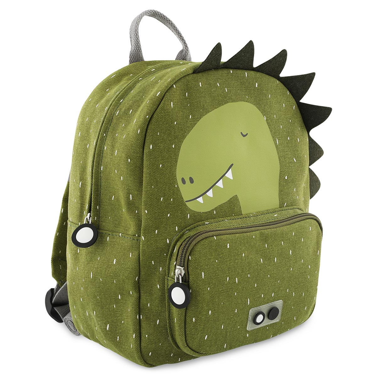 Παιδικό σακίδιο πλάτης σε πράσινο χρώμα και σχέδιο δεινόσαυρο της εταιρίας Trixie. Κατασκευασμένο από 100% βαμβάκι που το καθιστά αρκετά μαλακό και ανθεκτικό. Διαθέτει ρυθμιζόμενους και επενδυμένους ιμάντες ώμου για να προσαρμόζεται στην πλάτη του μικρού σας, ενώ η κοντή λαβή στο πάνω μέρος της τσάντας, διευκολύνει στο να την κρεμάτε εύκολα παντού. Ο ιμάντας στήθους εμποδίζει τους ιμάντες ώμου να πέσουν κάτω. Η μεγάλη και κύρια μπροστινή τσέπη κλείνει με φερμουάρ για να μπορεί το μικρό σας να την ανοιγοκλείνει με ευκολία, ενώ η μικρή μπροστινή τσέπη είναι ιδανική για να αποθηκεύσετε μικρά σνακ. Η ετικέτα ονόματος που διαθέτει στο εσωτερικό της η τσάντα, είναι ιδανική για να γράψετε το όνομα του μικρού σας για να μην την χάσει. Η τσάντα είναι υδατοαπωθητική και πλένεται εύκολα στο πλυντήριο. Ωστόσο όσες περισσότερες φορές την πλύνετε, τόσο λιγότερο νερό θα απωθεί. Ιδανικό σακίδιο για το σχολείο, τις εκδρομές και ότι άλλο επιθυμείτε.