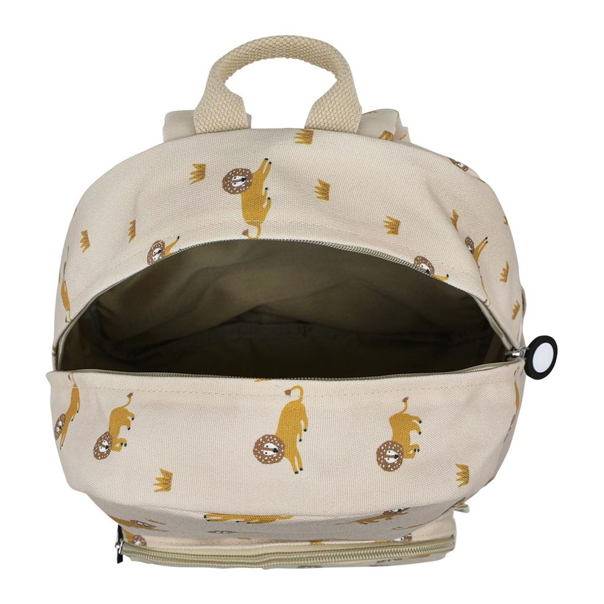Με το παιδικό σακίδιο της εταιρείας Trixie, το παιδί σας είναι έτοιμο για τις περιπέτειες στο σχολείο. Έχει μπεζ χρώμα, με λεπτομέρειες στο χρώμα της ώχρας και σχέδιο λιονταράκια και βολική λαβή για να κρεμιέται παντού. Τα λουριά πλάτης διαθέτουν εσωτερική επένδυση και ρυθμιζόμενο ύψος. Ο ιμάντας στήθους κρατάει τα λουριά σταθερά στην θέση τους ώστε να μην πέφτουν. Έχει μια μεγάλη τσέπη και μία μικρότερη στο μπροστινό μέρος, που ανοίγουν και κλείνουν με φερμουάρ. Είναι κατασκευασμένη από 100% ανακυκλωμένο Pet ενώ η εσωτερική επένδυση είναι κατασκευασμένη από 85% ανακυκλωμένος πολυεστέρας 15% βαμβάκι που την καθιστά ανθεκτική.