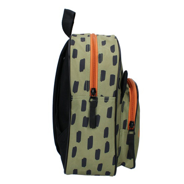 Τσάντα νηπιαγωγείου από την εταιρεία Pret. Έχει χακί χρώμα με μαύρες και πορτοκαλί λεπτομέρειες. Έχει σχέδιο με αρκουδάκι. Διαθέτει φινίρισμα σε μαύρο χρώμα. Είναι κατασκευασμένη από 100% polyester που προσφέρει αντοχή στο νερό και ευκολία στο καθάρισμα. Διαθέτει μια ευρύχωρη κύρια θήκη με φερμουάρ και είναι αρκετά μεγάλη ώστε να χωρέσει ένα φαγητοδοχείο μεσημεριανού γεύματος, παιχνίδια και πολλά άλλα αντικείμενα. Επιπλέον, έχει και μπροστινή τσέπη με φερμουάρ. Οι ρυθμιζόμενοι ιμάντες και η επιφάνεια της πλάτης, έχουν εσωτερική επένδυση ώστε να αποφεύγονται τραυματισμοί. Η θηλιά στο επάνω μέρος καθιστά επίσης εύκολη τη μεταφορά. Ιδανική τσάντα για τον παιδικό σταθμό, το νηπιαγωγείο, την εκδρομή ή οποιαδήποτε άλλη δραστηριότητα.