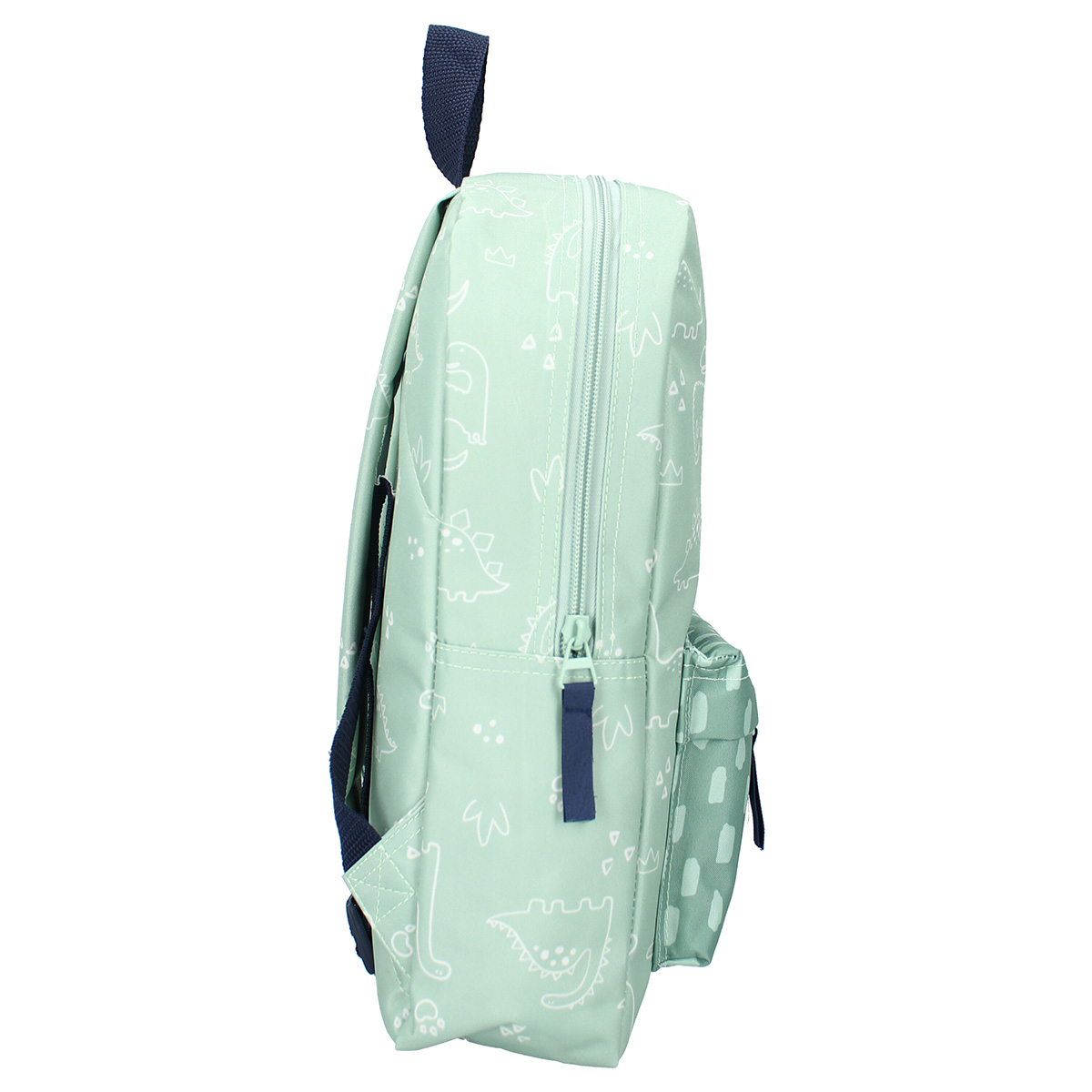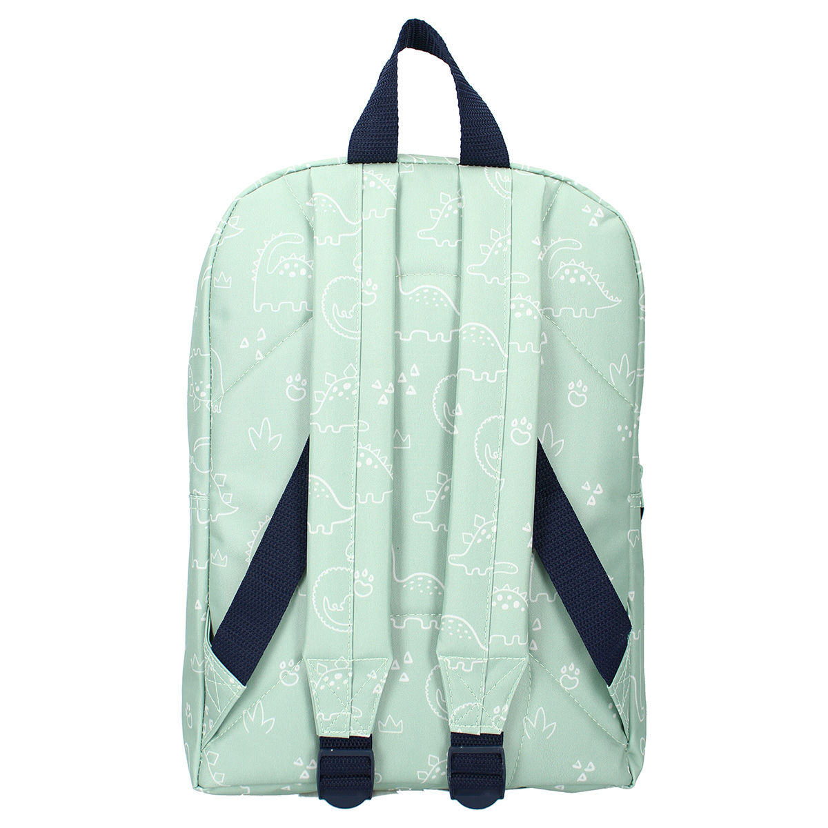 Τσάντα νηπιαγωγείου από την εταιρεία Pret. Έχει βεραμάν χρώμα με μπλε και πράσινες λεπτομέρειες. Έχει σχέδιο με δεινόσαυρο. Είναι κατασκευασμένη από 100% polyester που προσφέρει αντοχή στο νερό και ευκολία στο καθάρισμα. Διαθέτει μια ευρύχωρη κύρια θήκη με φερμουάρ και είναι αρκετά μεγάλη ώστε να χωρέσει ένα φαγητοδοχείο μεσημεριανού γεύματος, παιχνίδια και πολλά άλλα αντικείμενα. Επιπλέον, έχει και μπροστινή τσέπη με φερμουάρ. Οι ρυθμιζόμενοι ιμάντες και η επιφάνεια της πλάτης, έχουν εσωτερική επένδυση ώστε να αποφεύγονται τραυματισμοί. Η θηλιά στο επάνω μέρος καθιστά επίσης εύκολη τη μεταφορά. Ιδανική τσάντα για τον παιδικό σταθμό, το νηπιαγωγείο, την εκδρομή ή οποιαδήποτε άλλη δραστηριότητα.