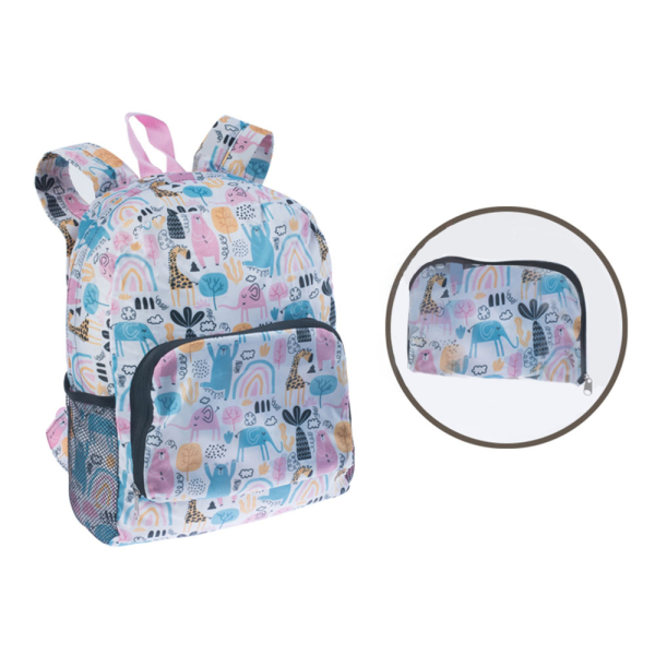 Σχολική τσάντα νηπιαγωγείου από την εταιρεία Gamberritos σε λευκό χρώμα με πολύχρωμα ζωάκια στο σχέδιο. Είναι κατασκευασμένη από 100% πολυεστέρα. Η κύρια θήκη του κλείνει εύκολα με φερμουάρ. Διαθέτει ρυθμιζόμενους ιμάντες ώμων. Μπορεί να αναδιπλωθεί για να αποθηκευτεί εύκολα. Ιδανική για να αποθηκεύει όλα τα απαραίτητα αντικείμενα του μικρού σας για το σχολείο, την βόλτα ή τα ταξίδια. Έχει ιδανικό μέγεθος για παιδιά από 12 μηνών έως 3 ετών.