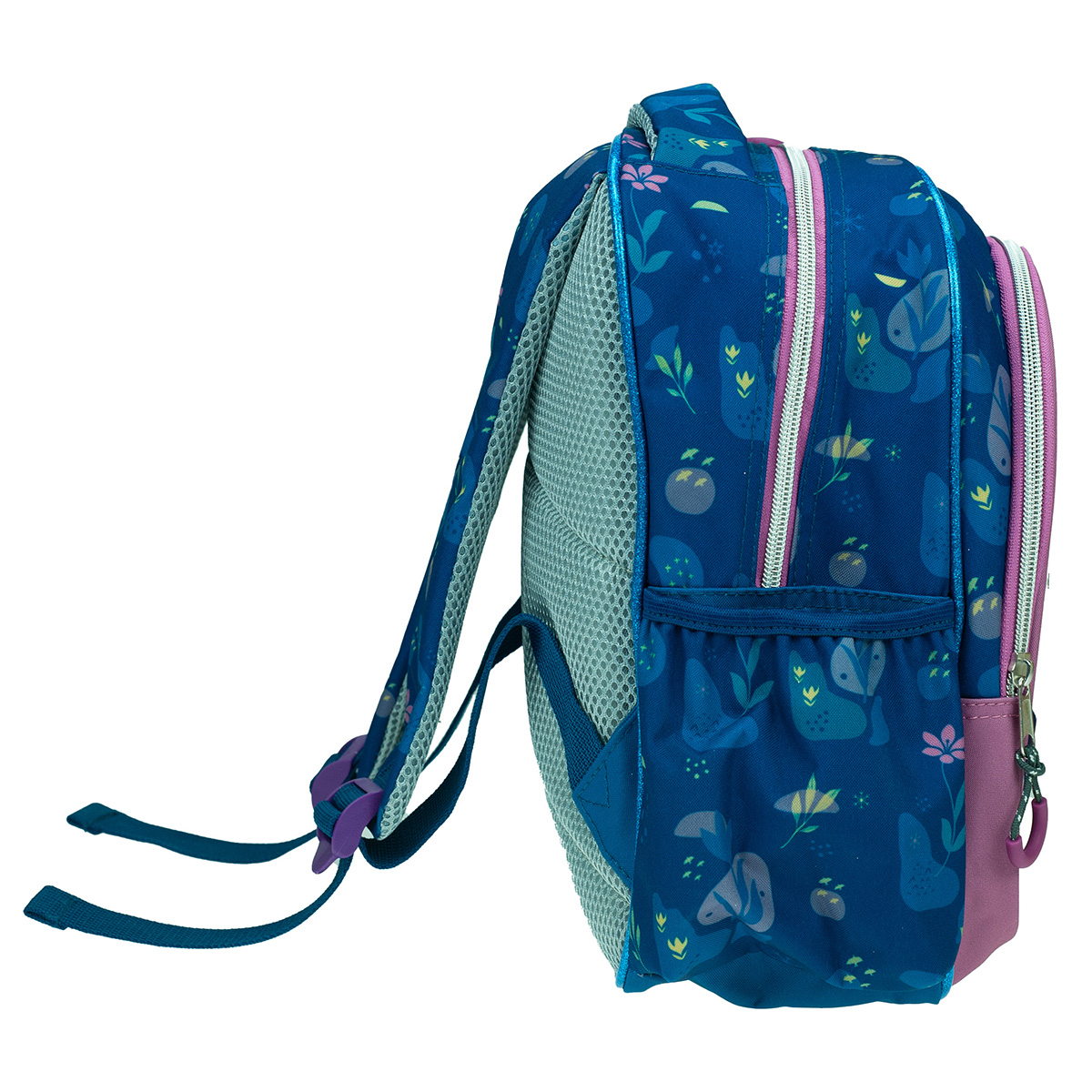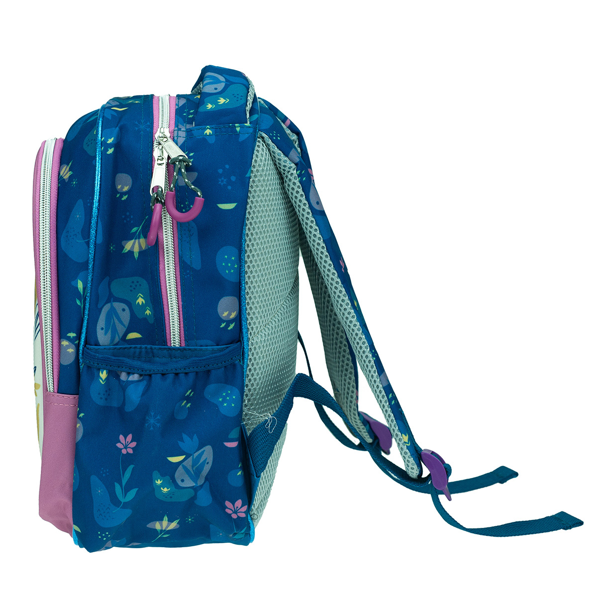 Σχολική τσάντα πλάτης νηπιαγωγείου σε μπλε χρώμα με βεραμάν-ροζ λεπτομέρειες σχέδιο από την ταινία Frozen της Disney, της εταιρείας Gim. Έχει 2 θήκες για βιβλία, τετράδια, κασετίνα και όλα τα απαραίτητα είδη γραφής για το σχολείο. Ιδανική για την καθημερινή ασφαλή, άνετη και εύκολη μεταφορά όλων των απαραίτητων σχολικών ειδών.