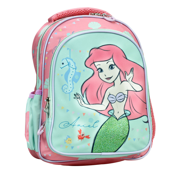 Σχολική τσάντα πλάτης νηπιαγωγείου από την εταιρεία Gim σε βεραμάν-σομόν χρώμα με την Άριελ της Disney στο σχέδιο. Με 2 θήκες για βιβλία, τετράδια, κασετίνα και όλα τα απαραίτητα είδη γραφής για το σχολείο. Ιδανική για την καθημερινή ασφαλή, άνετη και εύκολη μεταφορά όλων των απαραίτητων σχολικών ειδών.