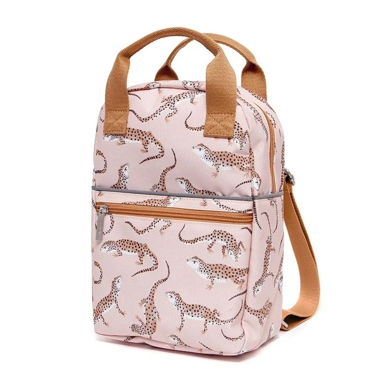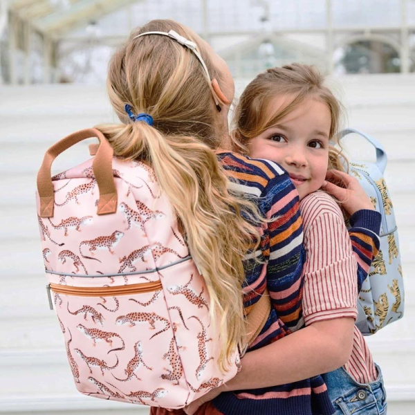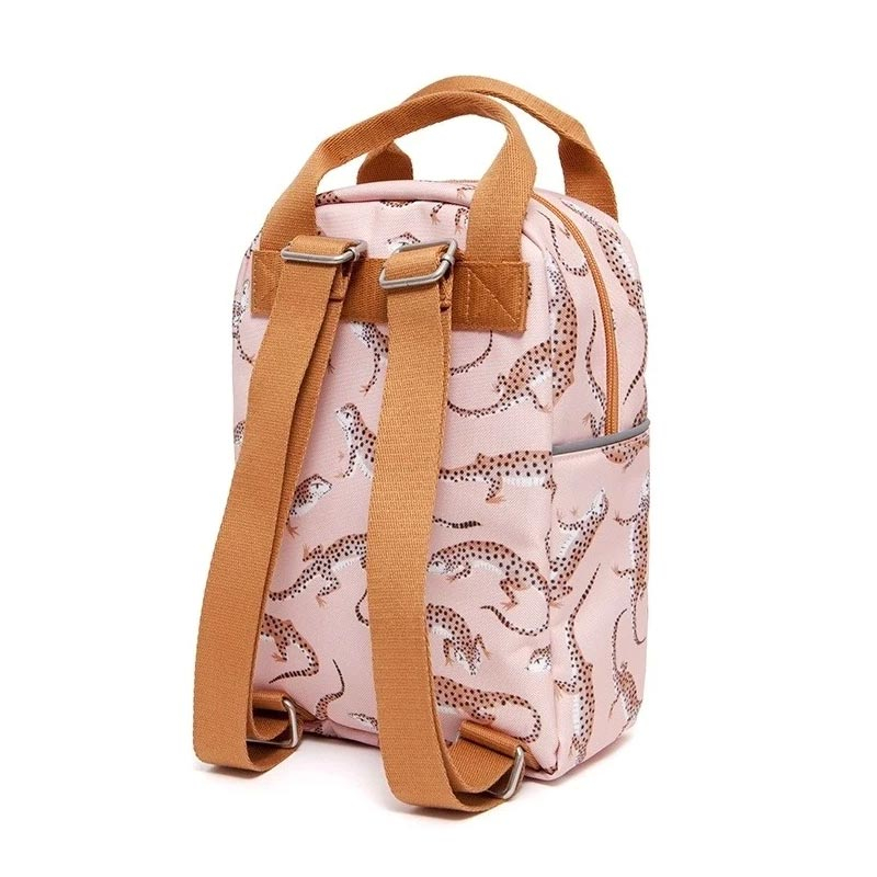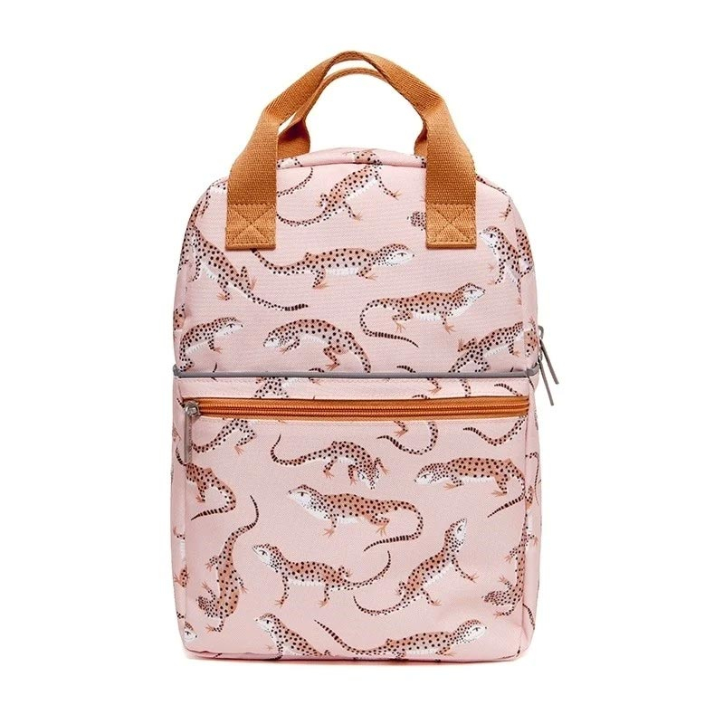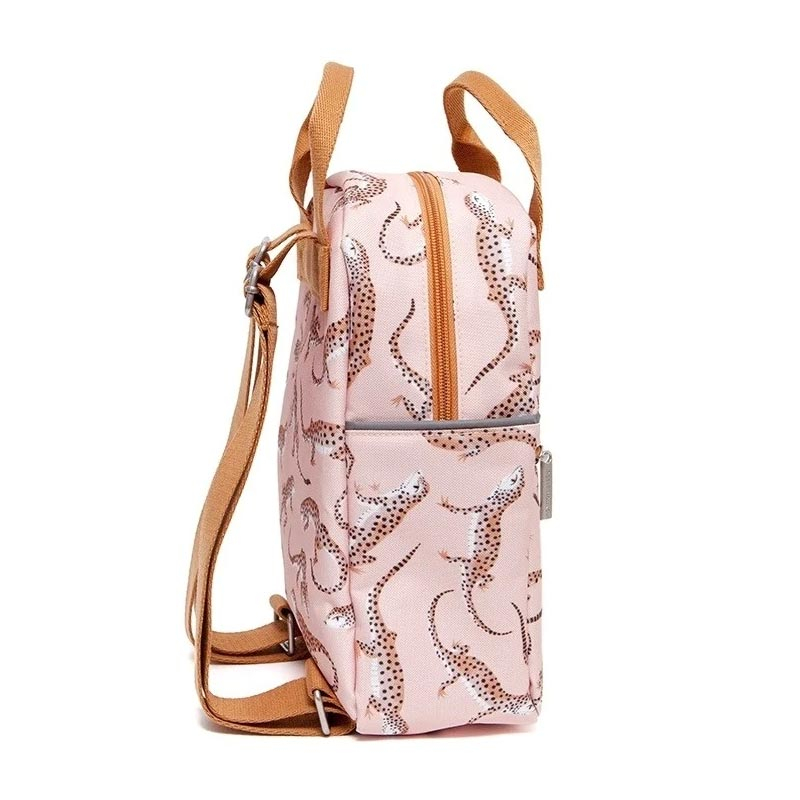 Τσάντα σχολική νηπιαγωγείου σε ροζ-πορτοκαλί χρώμα και σχέδιο ζωάκια από την εταιρία Petit Monkey. Είναι κατασκευασμένη από ανακυκλωμένα μπουκάλια PET για να συμβάλλουμε όλοι στην προστασία του περιβάλλοντος. (Το PET είναι το υλικό κατασκευής των πλαστικών μπουκαλιών και είναι 100% ανακυκλώσιμο. Τα μπουκάλια που ανακυκλώνονται, συλλέγονται, επεξεργάζονται για να γίνουν πάλι μπουκάλια ή μια ειδική ίνα με την οποία κατασκευάζονται διάφορα χρηστικά καθημερινά αντικείμενα). Διαθέτει επιπλέον μεγάλη τσέπη στο μπροστινό μέρος για την αποθήκευση μικροαντικειμένων όπως μαντηλάκια ενώ κλείνει με 2 φερμουάρ. Στο πλάι διαθέτει και θήκη για μπουκάλια, παγούρια κτλ. Οι ιμάντες αυξομειώνονται για να προσαρμόζονται εύκολα και οι 2 λαβές στο πάνω μέρος την καθιστούν εύκολη στο κρέμασμα αλλά και στο κράτημα. Είναι ιδανική για το νηπιαγωγείο αλλά και για εκδρομές, βόλτες ή ταξίδια. Κατάλληλη για ηλικίες έως 7 ετών.