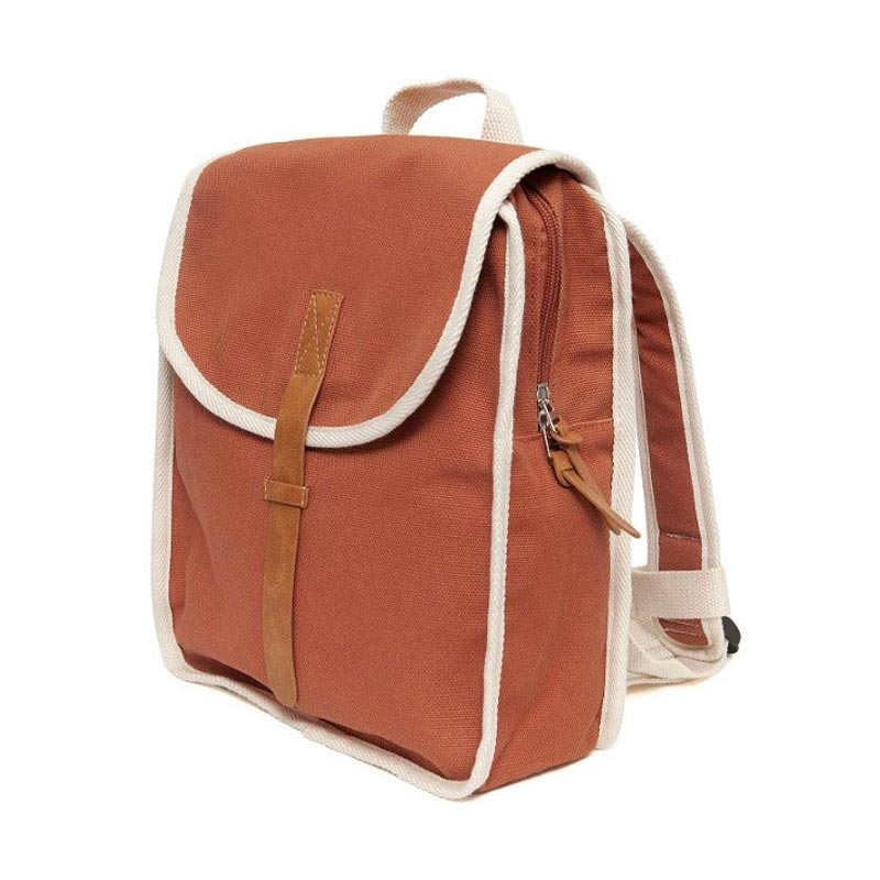 Τσάντα σχολική νηπιαγωγείου στο χρώμα της τερακότας και μοντέρνο σχέδιο από την εταιρία Petit Monkey. Είναι κατασκευασμένη από ανακυκλωμένο βαμβάκι, με λεπτομέρειες από ψεύτικο δέρμα στο μπροστινό μέρος και στο φερμουάρ. Κλείνει με φερμουάρ αλλά και με καπάκι με μαγνήτη για επιπλέον προστασία. Οι ιμάντες είναι ρυθμιζόμενοι για να προσαρμόζονται εύκολα και η λαβή είναι ιδανική για εύκολο κρέμασμα και κράτημα. Είναι ιδανική για το νηπιαγωγείο αλλά και για εκδρομές, βόλτες ή ταξίδια. Κατάλληλη για ηλικίες από 4 έως 8 ετών.