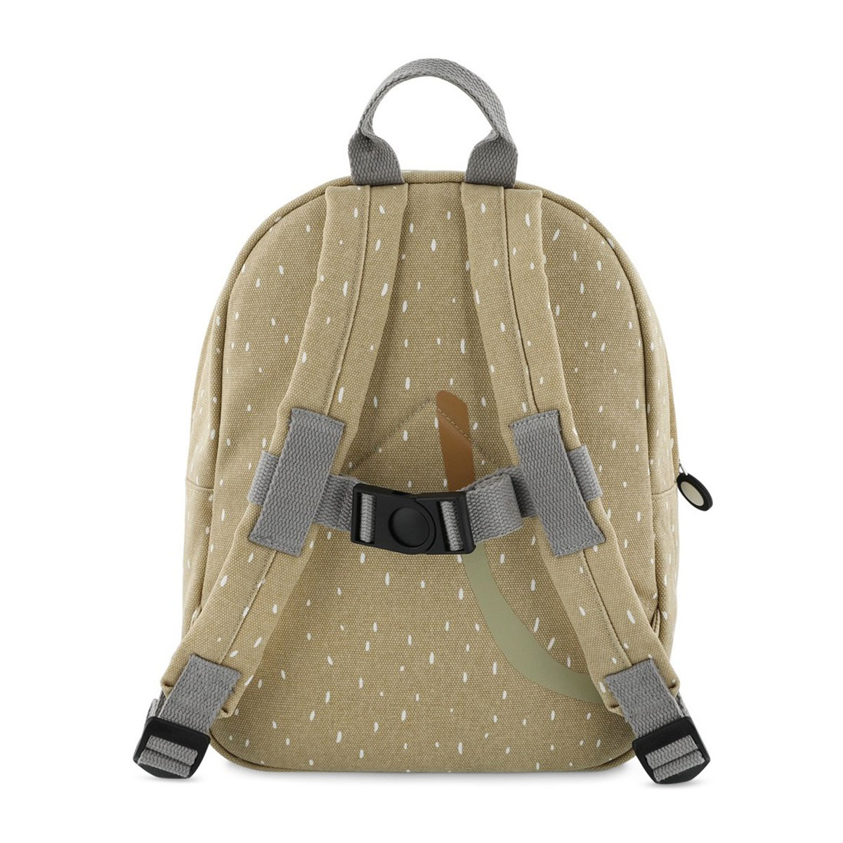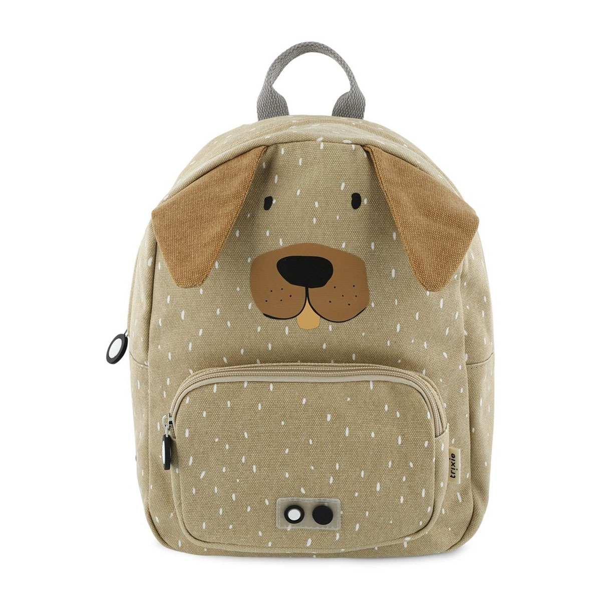 Παιδικό σακίδιο πλάτης σε μπεζ χρώμα, με καφέ λεπτομέρειες και σχέδιο σκυλάκι από την εταιρεία Trixie. Eείναι κατασκευασμένο από 60% ανακυκλωμένο βαμβάκι, 35% βαμβάκι, 5% βισκόζη που το καθιστά ιδιαίτερα μαλακό και ανθεκτικό. Έχει μια μεγάλη θήκη που χωράει βιβλία, τετράδια μεγέθους Α4 και κλείνει με φερμουάρ. Στην μπροστινή πλευρά έχει μια μικρότερη τσέπη ιδανική για να αποθηκεύετε μικρά σνακ και κλείνει με φερμουάρ. Διαθέτει ρυθμιζόμενους και επενδυμένους ιμάντες ώμου για να προσαρμόζεται στην πλάτη του μικρού σας και κλείνουν μεταξύ τους με κλιπ. Η κοντή λαβή στο πάνω μέρος της τσάντας διευκολύνει στο να την κρεμάτε εύκολα παντού. Ο ιμάντας στήθους εμποδίζει τους ιμάντες ώμου να πέσουν κάτω. Η τσάντα είναι υδατοαπωθητική και πλένεται εύκολα στο πλυντήριο με απαλό ξέβγαλμα. Ιδανικό σακίδιο για το σχολείο, τις εκδρομές και ότι άλλο επιθυμείτε.