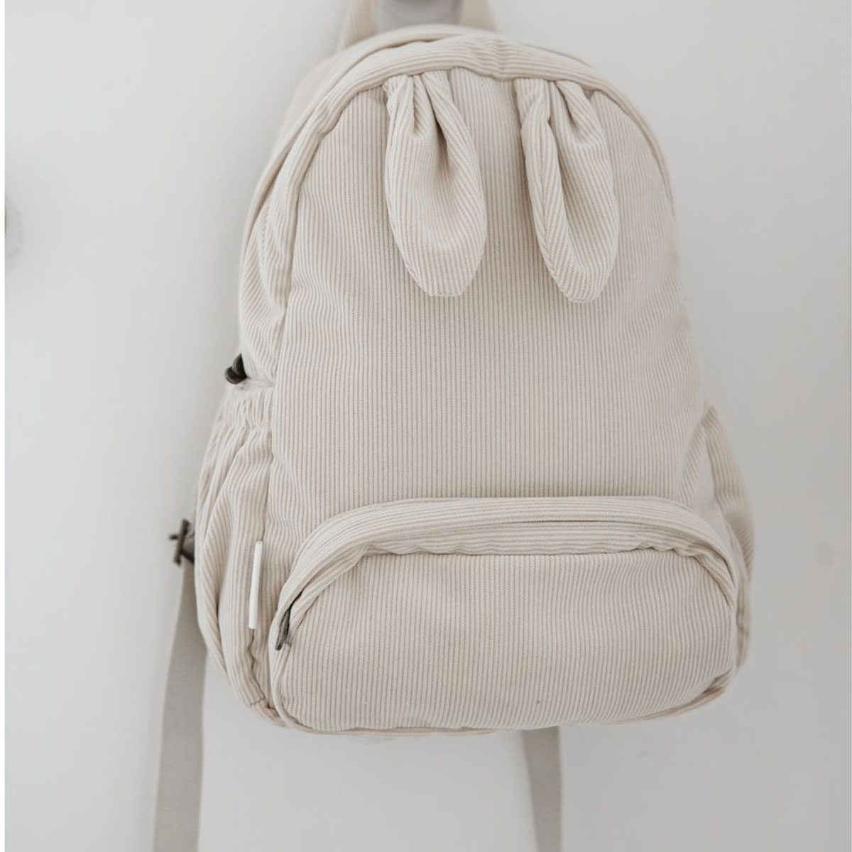 Τσάντα νηπιαγωγείου σε εκρού χρώμα και σχέδιο κουνελάκι. Είναι κατασκευασμένη από 100% polyester με αδιάβροχη επένδυση και ειδική ετικέτα για να γράψετε το όνομα του παιδιού. Διαθέτει μια κύρια θήκη με φερμουάρ και είναι αρκετά μεγάλη ώστε να χωρέσει ένα φαγητοδοχείο μεσημεριανού γεύματος, παιχνίδια και άλλα αντικείμενα. Επιπλέον, έχει και μπροστινή τσέπη με φερμουάρ. Διαθέτει ρυθμιζόμενους ιμάντες και η θηλιά στο επάνω μέρος καθιστά επίσης εύκολη τη μεταφορά. Ιδανική τσάντα για τον παιδικό σταθμό, το νηπιαγωγείο, την εκδρομή ή οποιαδήποτε άλλη δραστηριότητα.