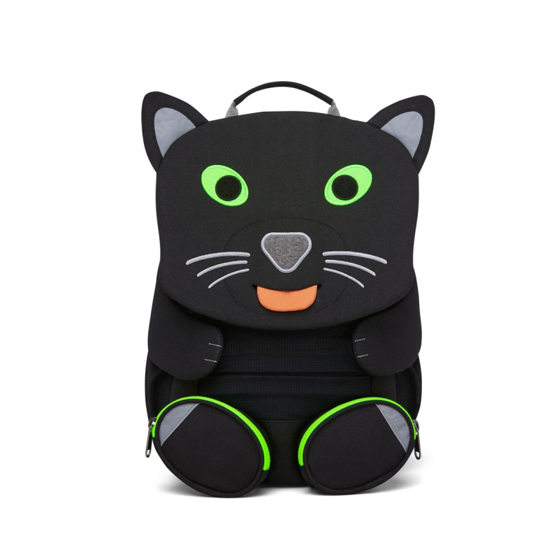 Σακίδιο πλάτης για τον παιδικό σταθμό, το νηπιαγωγείο και τις εκδρομές από την εταιρεία Affenzahn. 'Έχει μαύρο χρώμα και σχήμα πάνθηρα. Είναι κατασκευασμένη από ύφασμα που προέρχεται 50% από ανακυκλωμένα μπουκάλια και είναι φιλικό προς το περιβάλλον. Το καθιστά αδιάβροχο, ανθεκτικό στους λεκέδες και εύκολο στο καθάρισμα. Tο σακίδιο μπορεί να προσαρμοστεί ακριβώς στα μέτρα του παιδιού, χάρη στον ρυθμιζόμενο σε ύψος ιμάντα στήθους, που βοηθάει τα λουριά της πλάτης να παραμένουν σταθερά, ακριβώς όπως και τα περιεχόμενα του σακιδίου. Επιπλέον, διαθέτει ανακλαστήρες για μεγιστοποίηση της ασφάλειας στο σκοτάδι, αλλά και ένα πολύ δυνατό χερούλι για να μπορεί να κρεμαστεί από εκεί στο σπίτι, στον σταθμό ή στο νηπιαγωγείο. Τέλος, τραβώντας τη γλωσσίτσα στο μπροστά μέρος θα βρείτε μια ετικέτα για να σημειώσετε τα στοιχεία του κατόχου. Κατάλληλο για ηλικίες 3 ετών και άνω. Βάρος (κενό) 420 γραμμάρια. Χωρητικότητα 8 λίτρα. Συνδυάστε τη με τα υπόλοιπα είδη της ίδιας σειράς.
