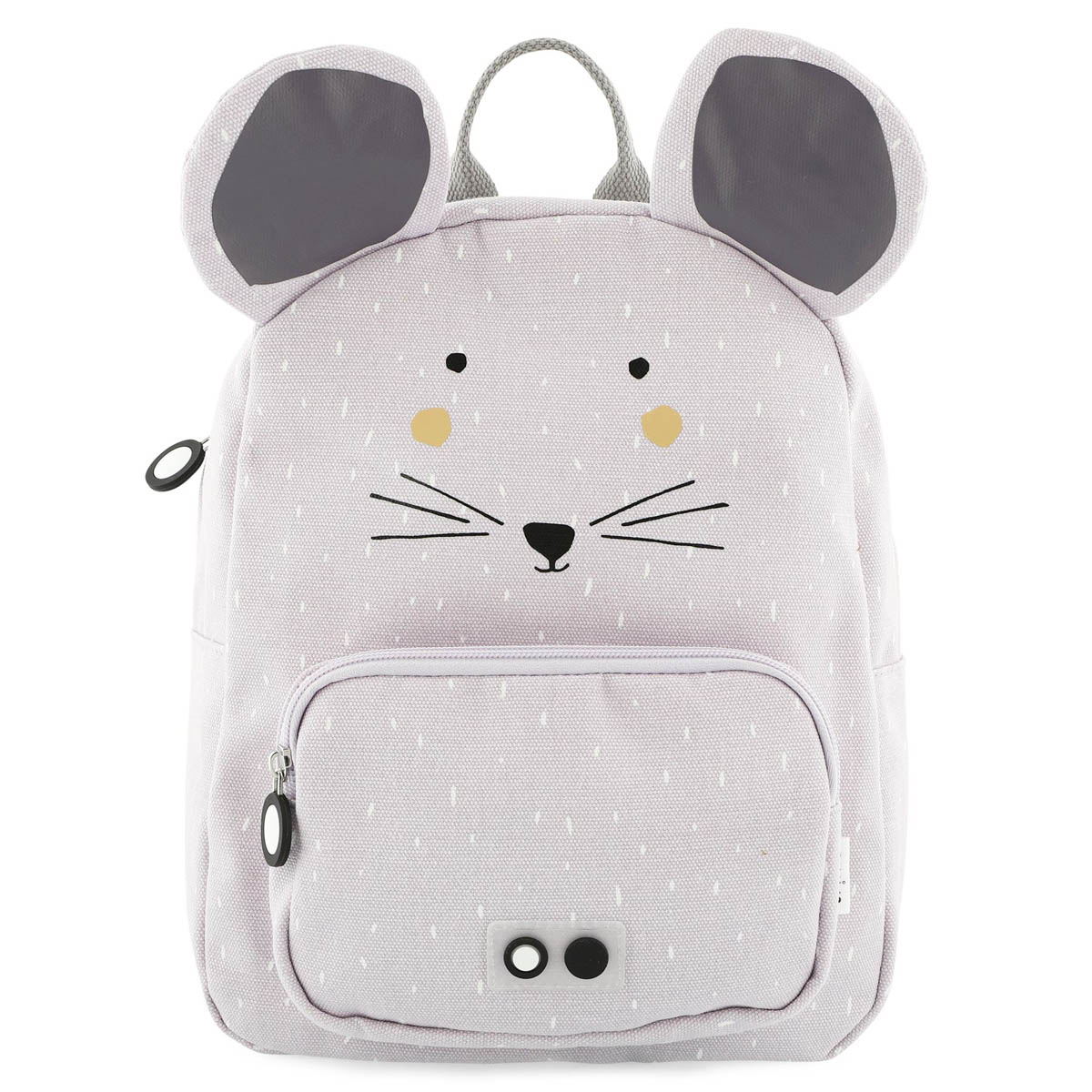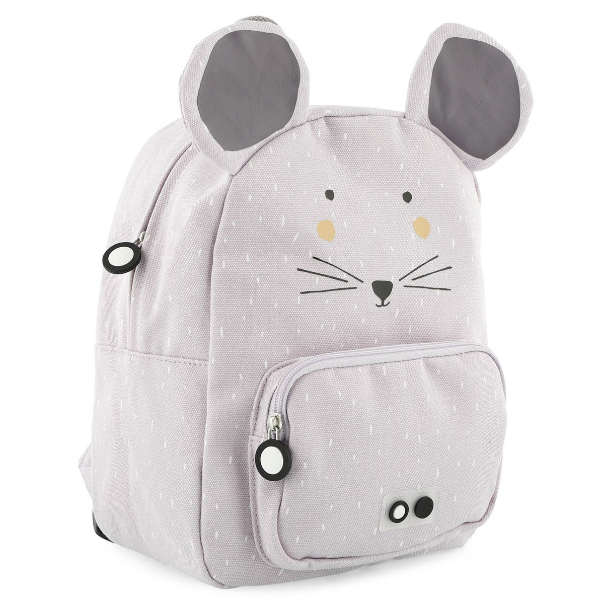 Με το παιδικό σακίδιο της εταιρείας Trixie, το παιδί σας είναι έτοιμο για τις περιπέτειες στο σχολείο. Έχει γκρι χρώμα, σχέδιο ποντικάκι και βολική λαβή για να κρεμιέται παντού. Τα λουριά πλάτης διαθέτουν εσωτερική επένδυση και ρυθμιζόμενο ύψος. Ο ιμάντας στήθους κρατάει τα λουριά σταθερά στην θέση τους ώστε να μην πέφτουν. Έχει μια μεγάλη τσέπη και μία μικρότερη στο μπροστινό μέρος, που ανοίγουν και κλείνουν με φερμουάρ. Εσωτερικά έχει ετικέτα για να γράψει τα στοιχεία του ώστε να μην την χάσει ποτέ. Είναι κατασκευασμένη από 100% βαμβάκι εξωτερικά, ενώ εσωτερικά έχει επένδυση από 95% Polyester-5% βαμβάκι και είναι ανθεκτική στο νερό.