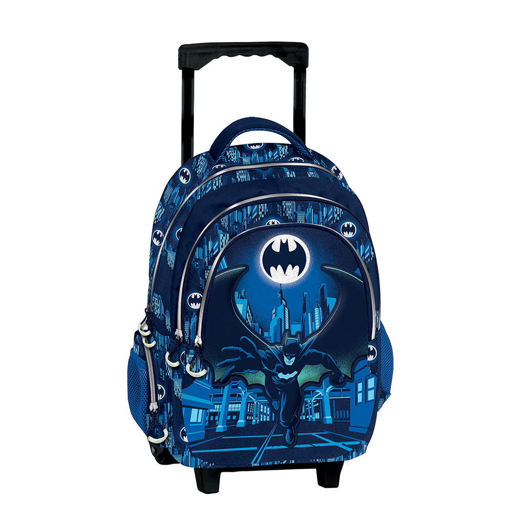 Σχολική τσάντα δημοτικού τρόλεϊ σε μπλε χρώμα με μαύρες λεπτομέρειες και σχέδιο με τον ήρωα της Marvel Batman της εταιρείας Graffiti. Με 3 θήκες για βιβλία, τετράδια, κασετίνα και όλα τα απαραίτητα είδη γραφής για το σχολείο. Ιδανική για την καθημερινή ασφαλή, άνετη και εύκολη μεταφορά όλων των απαραίτητων σχολικών ειδών.