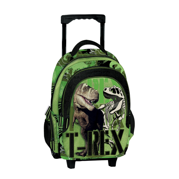 Σχολική τσάντα δημοτικού τρόλεϊ σε λαχανί χρώμα με μαύρες λεπτομέρειες και σχέδιο με τον δεινόσαυρο της εταιρείας Graffiti. Με 3 θήκες για βιβλία, τετράδια, κασετίνα και όλα τα απαραίτητα είδη γραφής για το σχολείο. Ιδανική για την καθημερινή ασφαλή, άνετη και εύκολη μεταφορά όλων των απαραίτητων σχολικών ειδών.