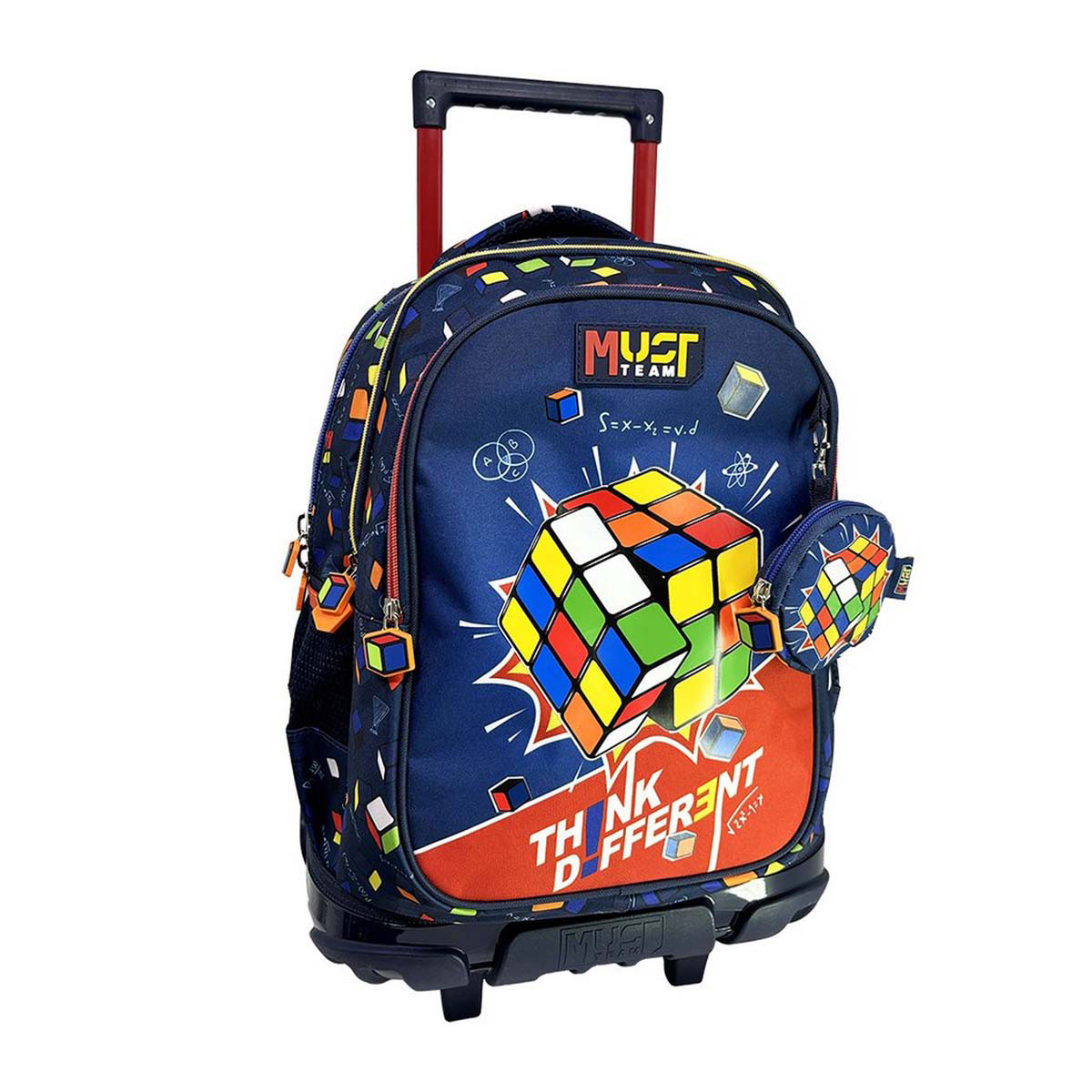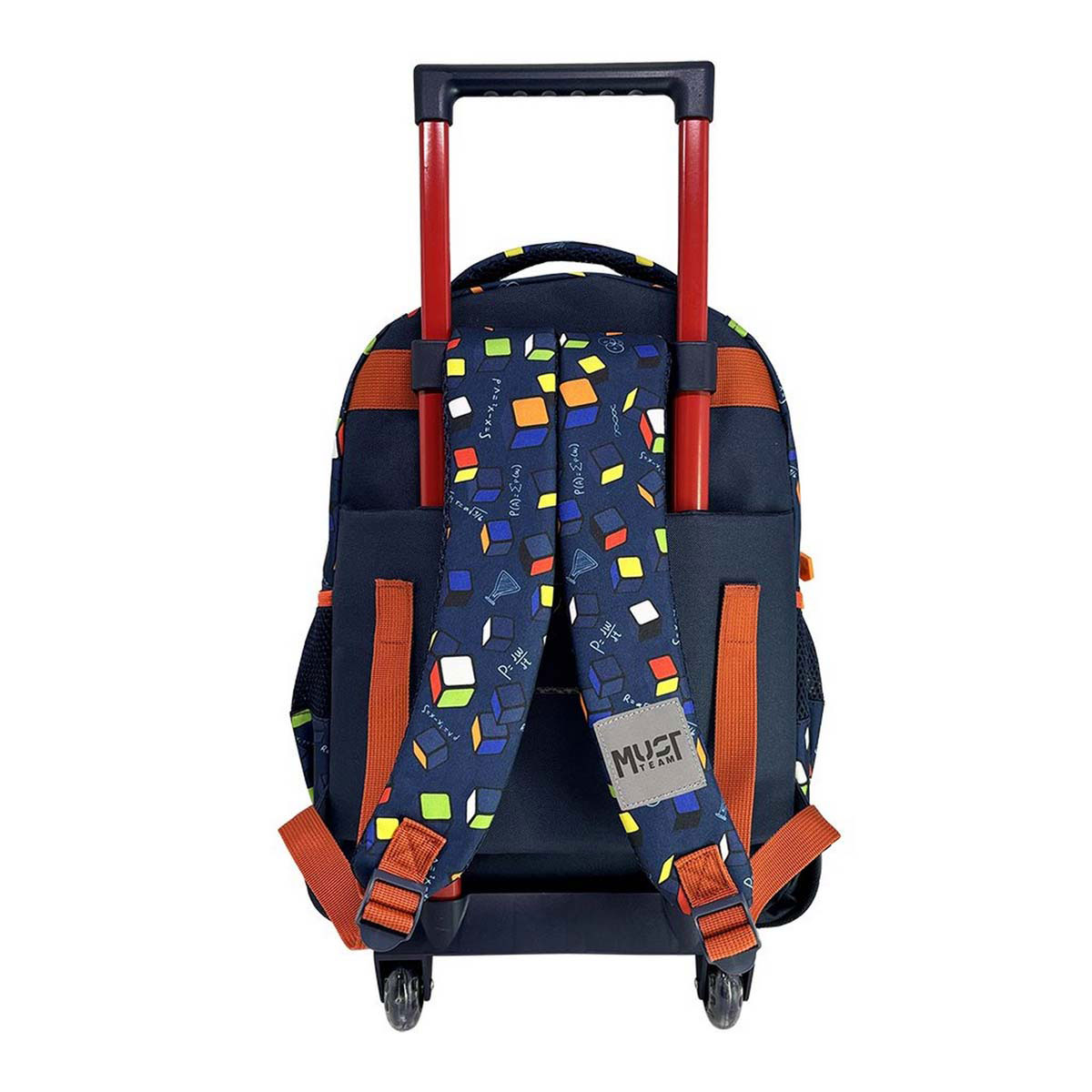 Σχολική τσάντα δημοτικού σε μπλε χρώμα με πολύχρωμες λεπτομέρειες και σχέδιο κύβος του Ρούμπικ από την εταιρεία Must που συνδυάζει σακίδιο πλάτης και τρόλεϊ μαζί. Με 3 θήκες για βιβλία, τετράδια, κασετίνα και όλα τα απαραίτητα είδη γραφής για το σχολείο. Ιδανική για την καθημερινή ασφαλή, άνετη και εύκολη μεταφορά όλων των απαραίτητων σχολικών ειδών.
