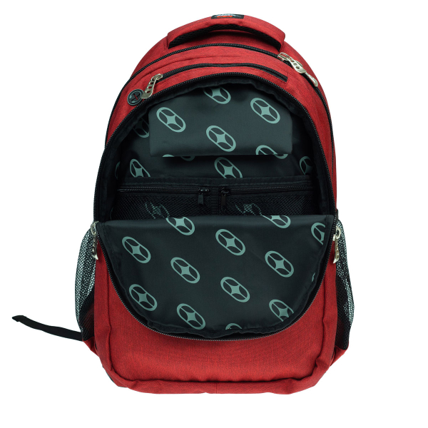 Σχολική τσάντα πλάτης για όλες τις σχολικές τάξεις σε κόκκινο χρώμα της εταιρείας No Fear. Με 2 θήκες για βιβλία, τετράδια, κασετίνα και όλα τα απαραίτητα είδη γραφής για το σχολείο. Ιδανική για την καθημερινή ασφαλή, άνετη και εύκολη μεταφορά όλων των απαραίτητων σχολικών ειδών.
