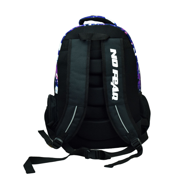 Σχολική τσάντα πλάτης για όλες τις σχολικές τάξεις σε μπλε-μωβ χρώμα με λευκές λεπτομέρειες και μοντέρνο σχέδιο της εταιρείας No Fear. Με 3 θήκες για βιβλία, τετράδια, κασετίνα και όλα τα απαραίτητα είδη γραφής για το σχολείο. Ιδανική για την καθημερινή ασφαλή, άνετη και εύκολη μεταφορά όλων των απαραίτητων σχολικών ειδών.