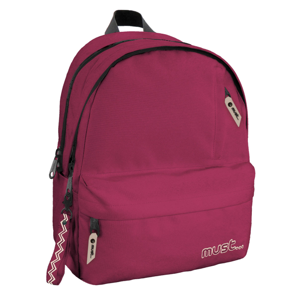 Σχολική τσάντα πλάτης για όλες τις σχολικές τάξεις της εταιρείας Must σε μπορντώ χρώμα. Με 3 θήκες για βιβλία, τετράδια, κασετίνα και όλα τα απαραίτητα είδη γραφής για το σχολείο. Ιδανική για την καθημερινή ασφαλή, άνετη και εύκολη μεταφορά όλων των απαραίτητων σχολικών ειδών.