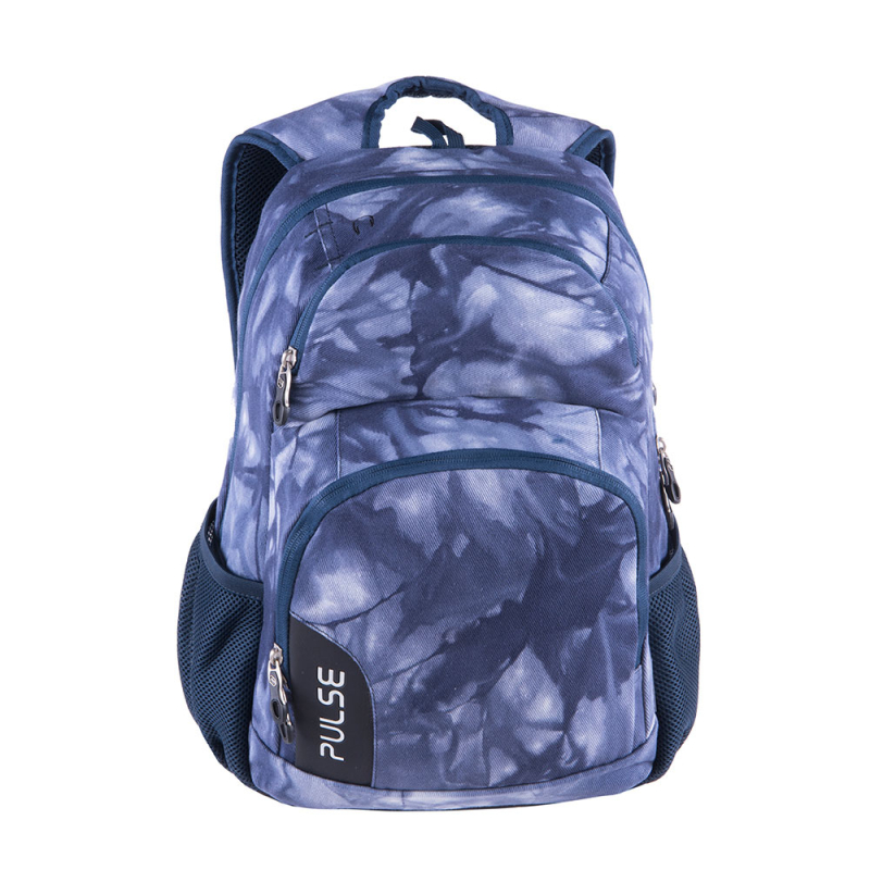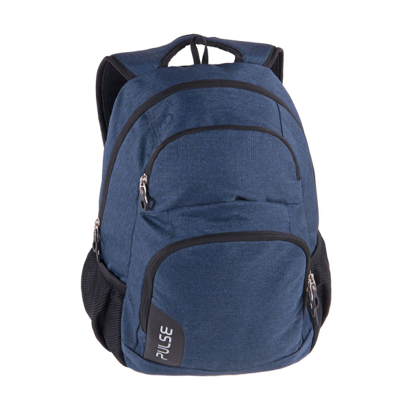 Σχολική τσάντα πλάτης για όλες τις σχολικές τάξεις σε μπλε χρώμα και μοντέρνο σχέδιο της εταιρείας Pulse. Με 3 θήκες για βιβλία, τετράδια, κασετίνα και όλα τα απαραίτητα είδη γραφής για το σχολείο. Ιδανική για την καθημερινή ασφαλή, άνετη και εύκολη μεταφορά όλων των απαραίτητων σχολικών ειδών.