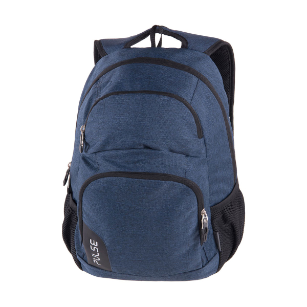 Σχολική τσάντα πλάτης για όλες τις σχολικές τάξεις σε μπλε χρώμα της εταιρείας Pulse. Με 3 θήκες για βιβλία, τετράδια, κασετίνα και όλα τα απαραίτητα είδη γραφής για το σχολείο. Ιδανική για την καθημερινή ασφαλή, άνετη και εύκολη μεταφορά όλων των απαραίτητων σχολικών ειδών.