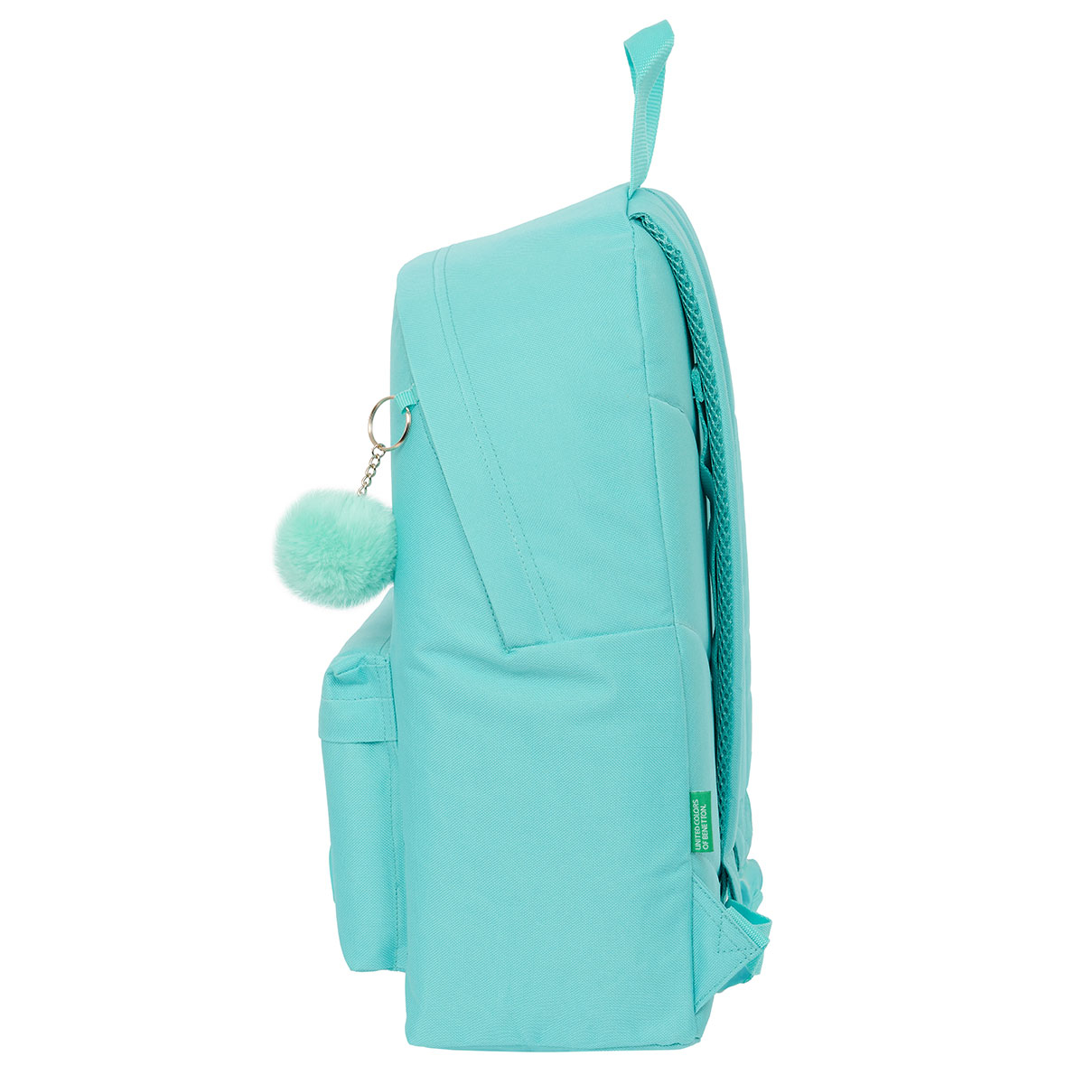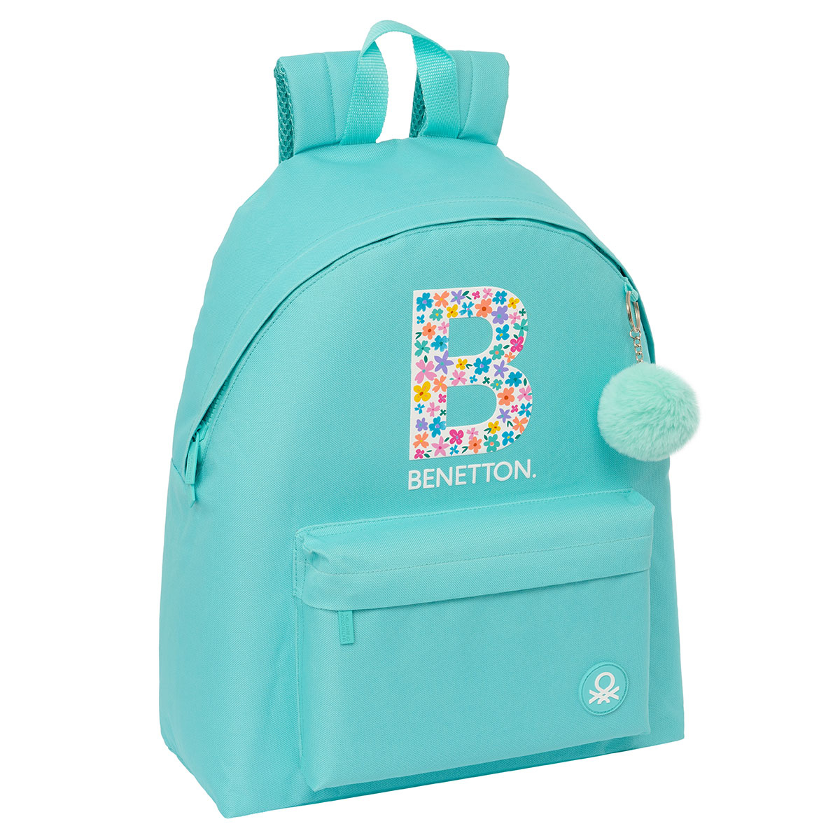 Σχολική τσάντα πλάτης για όλες τις σχολικές τάξεις από την εταιρεία Benetton. Έχει βεραμάν χρώμα με μοντέρνο σχέδιο και διακοσμητικό μπρελόκ. Είναι κατασκευασμένη από 100% polyester. Έχει 2 θήκες για βιβλία, τετράδια, κασετίνα και όλα τα απαραίτητα είδη γραφής για το σχολείο. Κατάλληλη τσάντα για καθημερινή ασφαλή, άνετη και εύκολη μεταφορά όλων των απαραίτητων σχολικών ειδών. Χωρητικότητας 18 λίτρα.