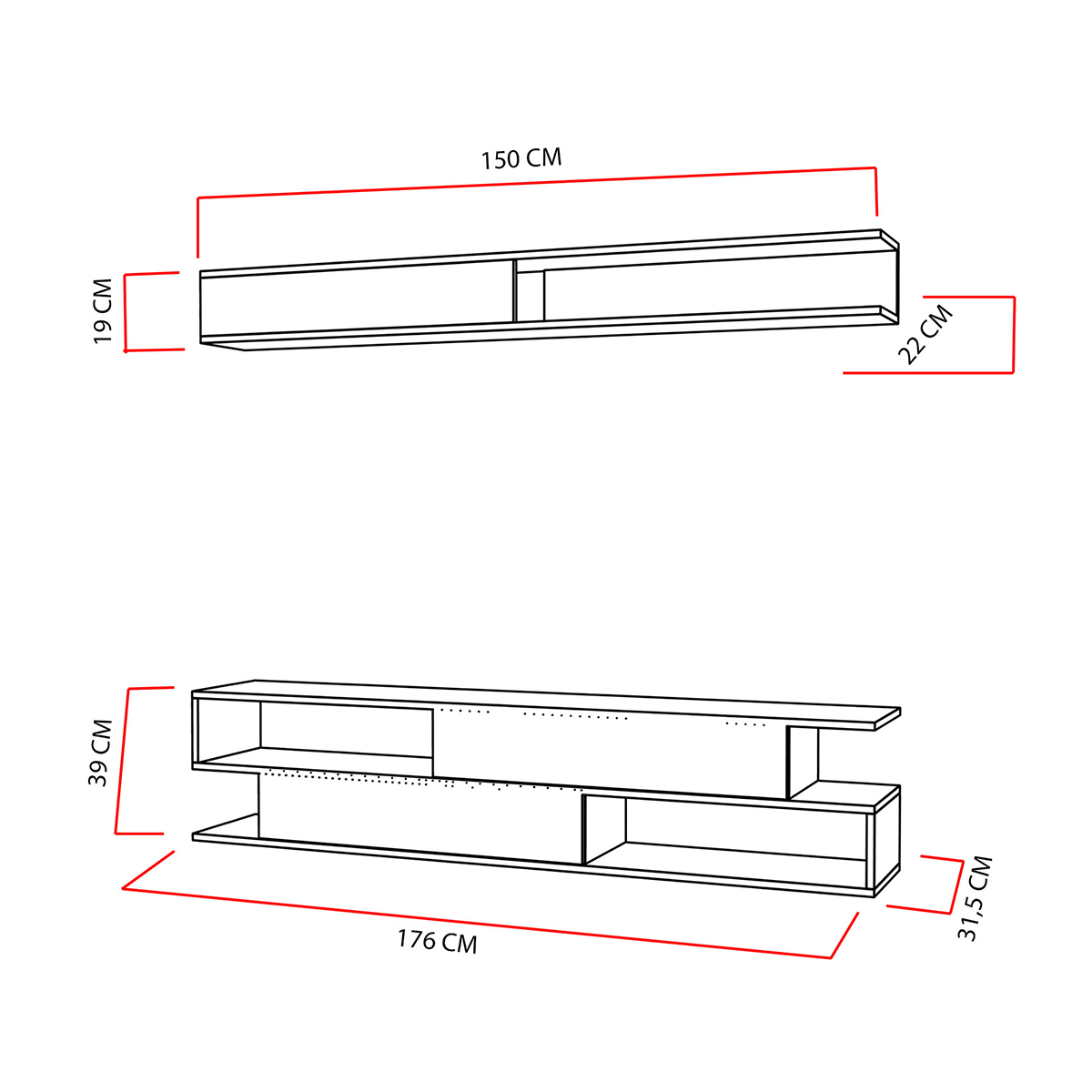 • Τεμάχια: 1 Έπιπλο Τηλεόρασης 176εκ.Μx31.5εκ.Πx39εκ.Υ, 1 Ραφιέρα 150εκ.Μx22εκ.Πx19εκ.Υ