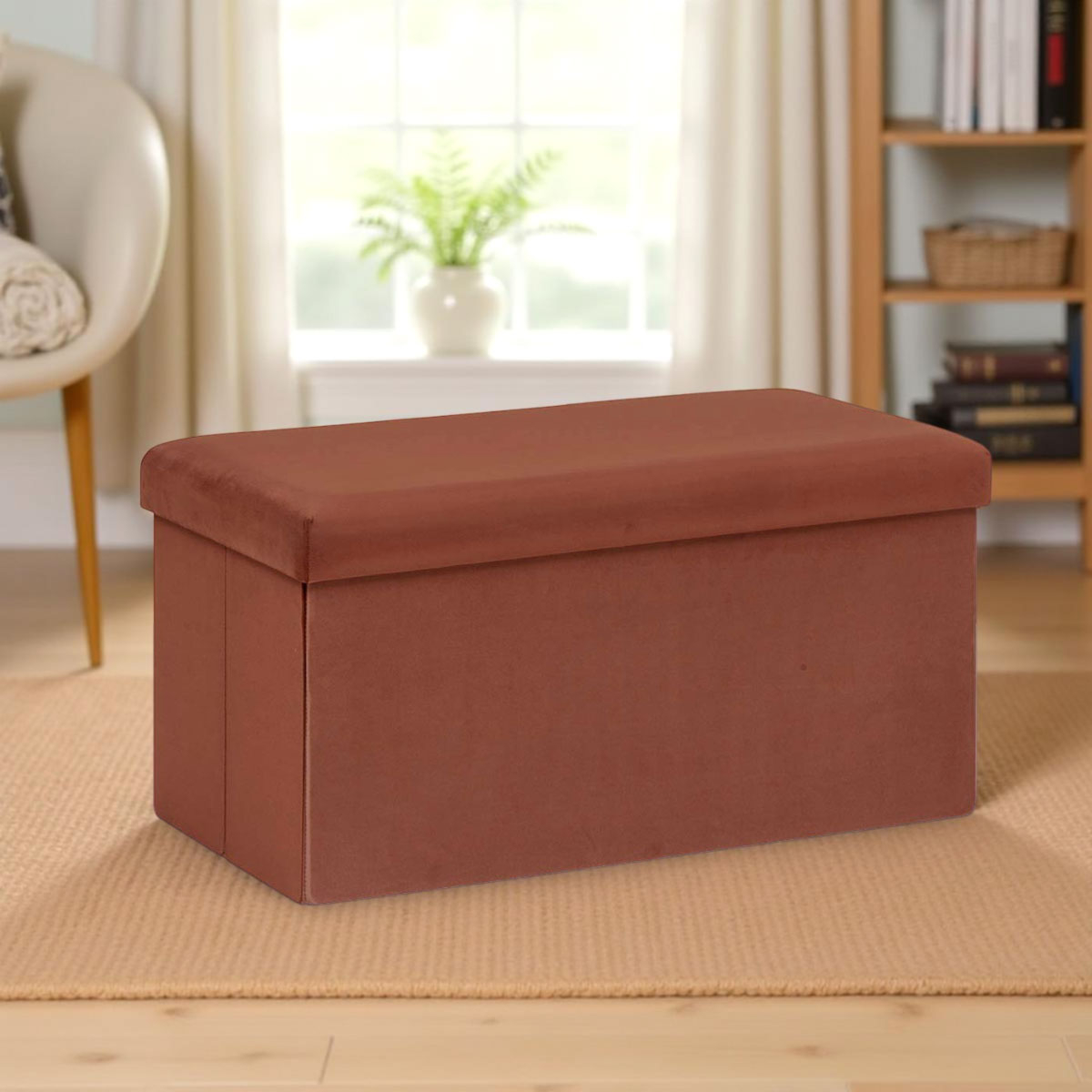Παγκάκι σε καφέ απόχρωση που θα προσφέρει ένα έξτρα κάθισμα στο χώρο σας. Είναι κατασκευασμένο από βελουτέ πολυεστερικό ύφασμα και MDF_E1. Στο κάτω μέρος διαθέτει αποθηκευτικό χώρο, ιδανικό για να τοποθετήσετε μικροπράγματα. Μπορεί να χρησιμεύσει και σαν ταμπουρέ για το κάτω μέρος του κρεβατιού. *Το προϊόν έρχεται μονταρισμένο.* Μέγιστο βάρος αντοχής: 110 κιλά.