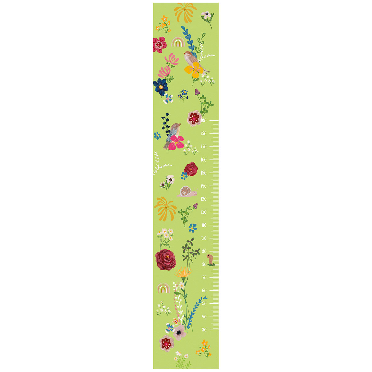 Ταπετσαρία τοίχου - αναστημόμετρο από την συλλογή Sofie & Junar της εταιρείας Behang Expresse. Σε λαχανί χρώμα με πολύχρωμο φλοράλ σχέδιο. Πρόκειται για χάρτινη ταπετσαρία υψηλής ποιότητας και ιταλικής κατασκευής με Vlies - Non Woven υπόστρωμα. Η επιφάνειά της είναι λεία κατασκευασμένη από πολυτελές χαρτί ψηφιακής εκτύπωσης. Μετράει το ύψος του παιδιού από 30 μέχρι 180εκ. και σαν βοηθάει να καταγράψετε τον ρυθμό ανάπτυξης του.