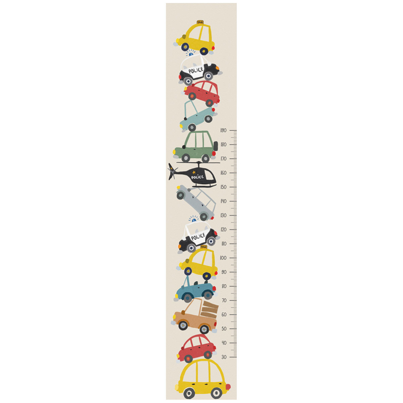 Ταπετσαρία τοίχου - αναστημόμετρο από την συλλογή Sofie & Junar της εταιρείας Behang Expresse. Σε μπεζ χρώμα με πολύχρωμα αυτοκινητάκια. Πρόκειται για χάρτινη ταπετσαρία υψηλής ποιότητας και ιταλικής κατασκευής με Vlies - Non Woven υπόστρωμα. Η επιφάνειά της είναι λεία κατασκευασμένη από πολυτελές χαρτί ψηφιακής εκτύπωσης. Μετράει το ύψος του παιδιού από 30 μέχρι 180εκ. και σαν βοηθάει να καταγράψετε τον ρυθμό ανάπτυξης του.