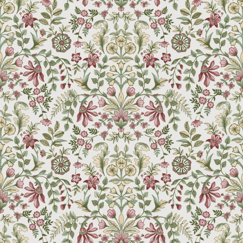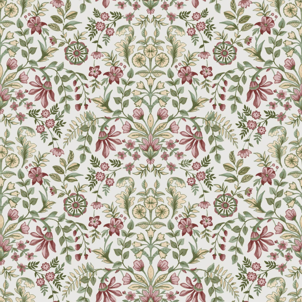 Ταπετσαρία τοίχου από την συλλογή Fiori Country 8 της εταιρείας Cristiana Masi by Parato. Έχει φλοράλ σχέδιο σε πράσινες και ροζ αποχρώσεις με λευκό φόντο. Πρόκειται για χάρτινη ταπετσαρία υψηλής ποιότητας και ιταλικής κατασκευής με Vlies - Non Woven υπόστρωμα. Η επιφάνειά της είναι λεία κατασκευασμένη από TNT, πλαστικοποιημένο χαρτί πολυτελείας.