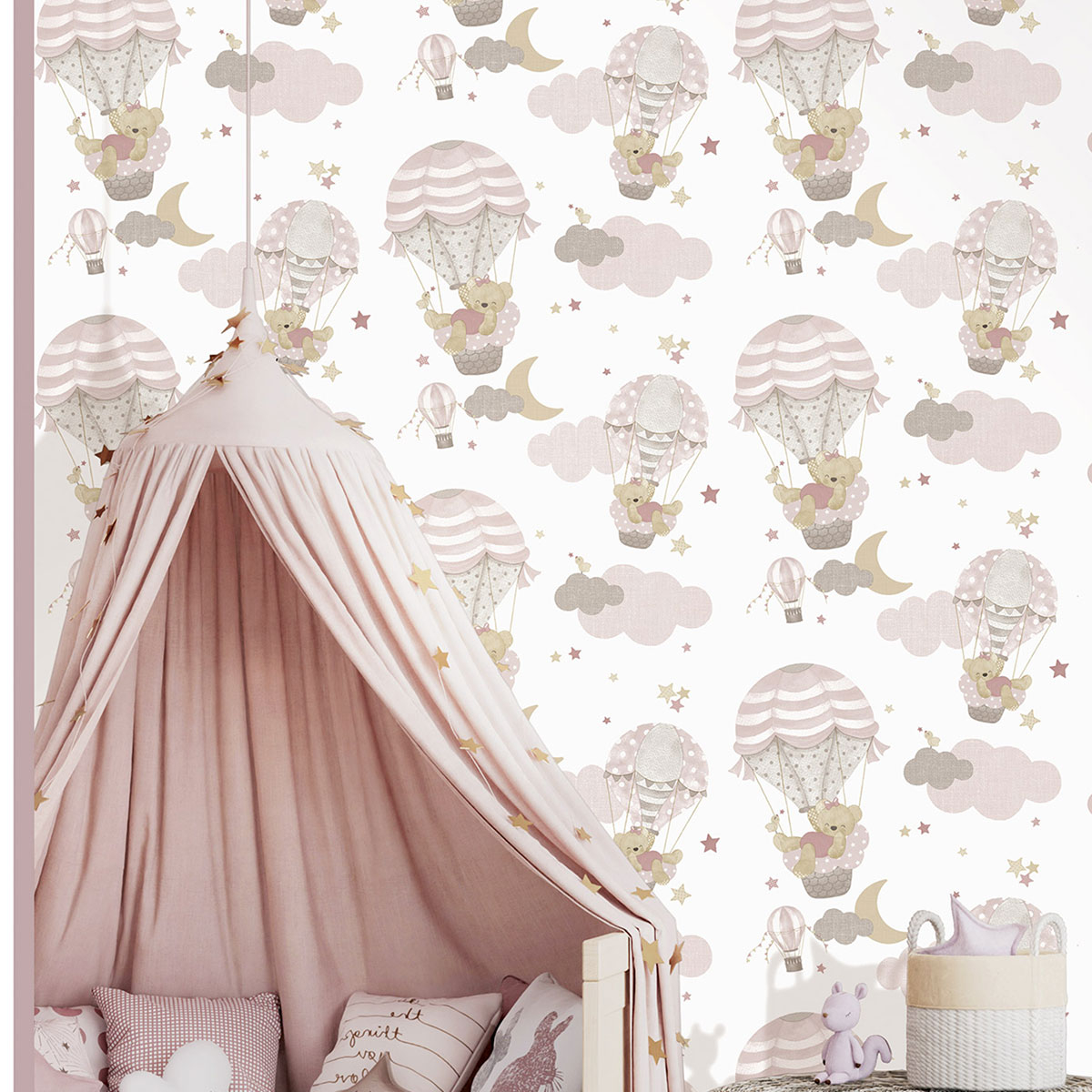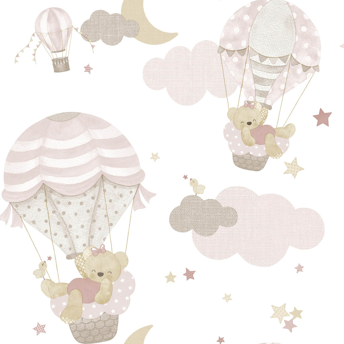 Παιδική ταπετσαρία τοίχου από την συλλογή Happy της εταιρείας Cristiana Masi by Parato. Έχει χαριτωμένο σχέδιο με αρκουδάκια σε μπεζ-ροζ αποχρώσεις με λευκό φόντο. Πρόκειται για χάρτινη ταπετσαρία υψηλής ποιότητας και ιταλικής κατασκευής με Vlies - Non Woven υπόστρωμα. Η επιφάνειά της είναι λεία κατασκευασμένη από TNT, πλαστικοποιημένο πολυτελές χαρτί.