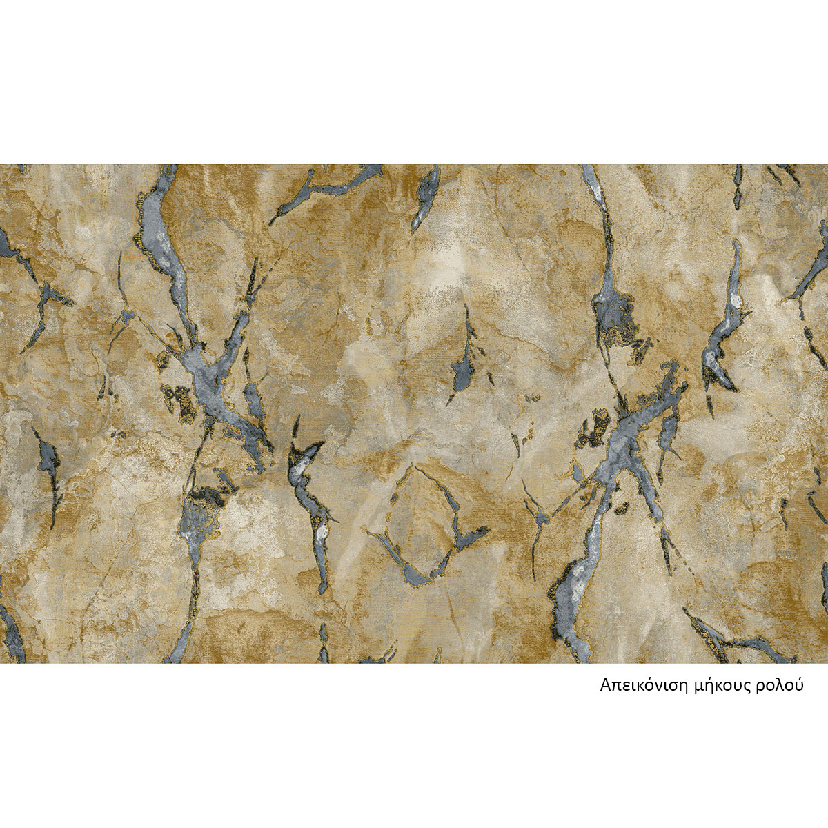 Ταπετσαρία τοίχου από την συλλογή Moderna της εταιρείας Cristiana Masi by Parato. Έχει μοντέρνο σχέδιο σε απομίμηση μαρμάρου. Το φόντο είναι σε αποχρώσεις ώχρας και μπεζ, ενώ το σχέδιο και οι λεπτομέρειες έχουν γαλάζιο-γκρι χρώμα. Πρόκειται για βινυλική ταπετσαρία υψηλής ποιότητας και ιταλικής κατασκευής με Vlies - Non Woven υπόστρωμα. Η επιφάνειά της είναι από Vinyl και έχει ήπιο ανάγλυφο, το οποίο αναδεικνύει τις λεπτομέρειες του σχεδίου και προσδίδει μία πινελιά πολυτέλειας.