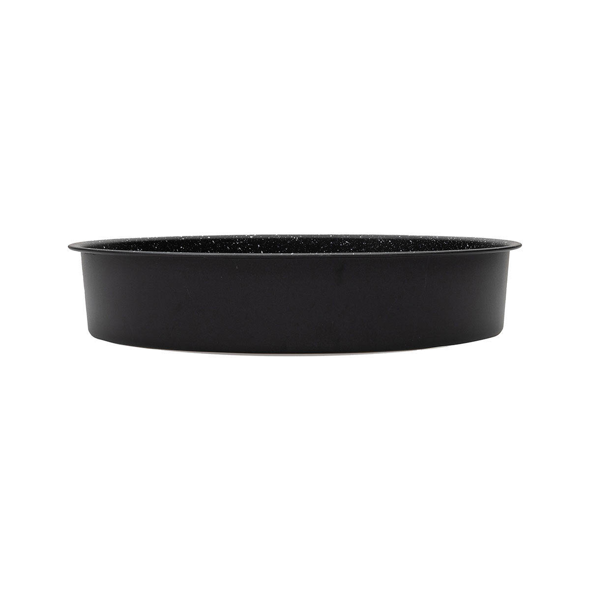 Στογγυλό ταψί από την εταιρεία εstia. Σώμα από ανθρακούχο χάλυβα πάχους 0.4mm που προσφέρει εξαιρετική θερμοαγωγικότητα και ομοιόμορφο ψήσιμο λόγω της ιδανικής κατανομής πάχους. Τριπλή μαρμάρινη αντικολλητική επίστρωση GOLDFLON που προσφέρει αντικολλητικές ιδιότητες που συναρπάζουν. Η επίστρωση έχει ως βάση το γκρι χρώμα ώστε να μην κιτρινίζει ποτέ, ακόμα και με τα δυσκολότερα όξινα υλικά. Κατάλληλο για φούρνο αέρα και φούρνο πάνω κάτω.