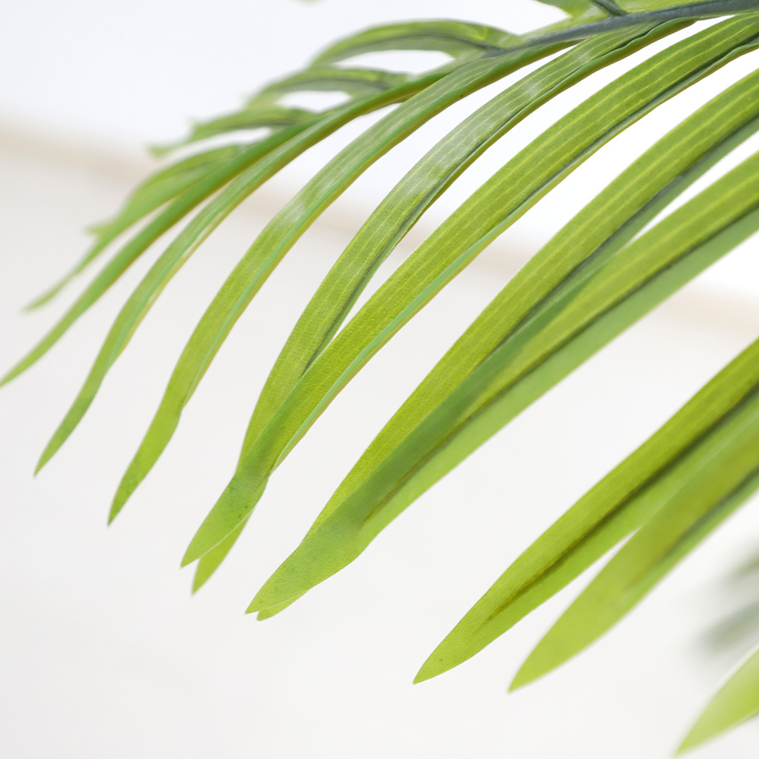 Τεχνητό δέντρο φοίνικας-αρέκα ύψους 240εκ. από την εταιρεία New Plan. Το φύλλωμα είναι πράσινο, ο κορμός είναι καφέ και η γλάστρα μαύρη. Διαθέτει μακρόστενα φύλλα που απλώνονται στις άκρες των λεπτών κλαδιών του. Είναι κατασκευασμένο από πλαστικό υλικό εκτός από τα φύλλα που είναι από πολυεστερικό ύφασμα. Τα κλαδιά της είναι στιβαρά και εύκαμπτα ώστε να μπορείτε να διαμορφώσετε εσείς ως έναν βαθμό το άνοιγμα τους. Η μοναδική φροντίδα που απαιτείται είναι το σκούπισμα τους με ένα πανί περιστασιακά. Αποτελεί ιδανική επιλογή για όλους τους εσωτερικούς χώρους όπως το σαλόνι, τη τραπεζαρία, τη κουζίνα, το γραφείο, ή τη βεράντα. Επίσης, είναι κατάλληλο και για επαγγελματικούς χώρους όπως καφέ, μπαρ, καταστήματα. Μπορεί να χρησιμοποιηθεί και σε εποχιακές διακοσμήσεις όπως γάμοι βαφτίσεις κλπ. Ιδανική επιλογή για να διακοσμήσετε τον χώρο σας χαρίζοντάς του μία αίσθηση τροπικού κλίματος. Δεν είναι βραδύκαυστο, δεν διαθέτει πιστοποιητικό ανθεκτικότητας UV και δεν χρειάζεται συναρμολόγηση.