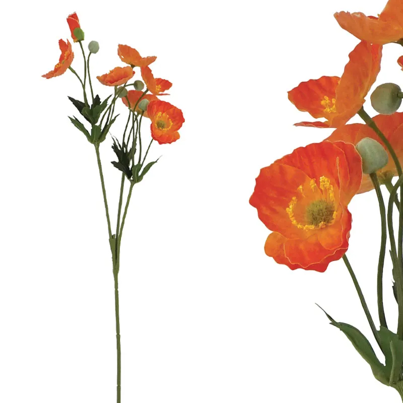 Τεχνητό λουλούδι με άνθη παπαρούνας σε πορτοκαλί χρώμα της εταιρείας Marhome. Είναι κατασκευασμένο από ύφασμα και πλαστικό υλικό. Έχει μεταλλικό σύρμα στο εσωτερικό του για να μπορείτε να του δώσετε το σχήμα που επιθυμείτε. Έχει υφή Real Touch για απόλυτα φυσική αίσθηση και εμφάνιση. Χρησιμοποιήστε τεχνητά φυτά για να διακοσμήσετε τους εσωτερικούς ή εξωτερικούς χώρου σας και να ανανεώσετε την αισθητική τους!